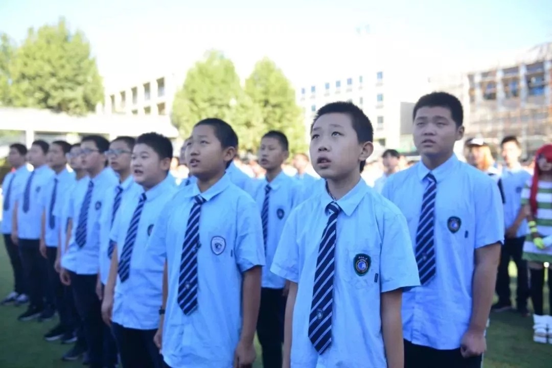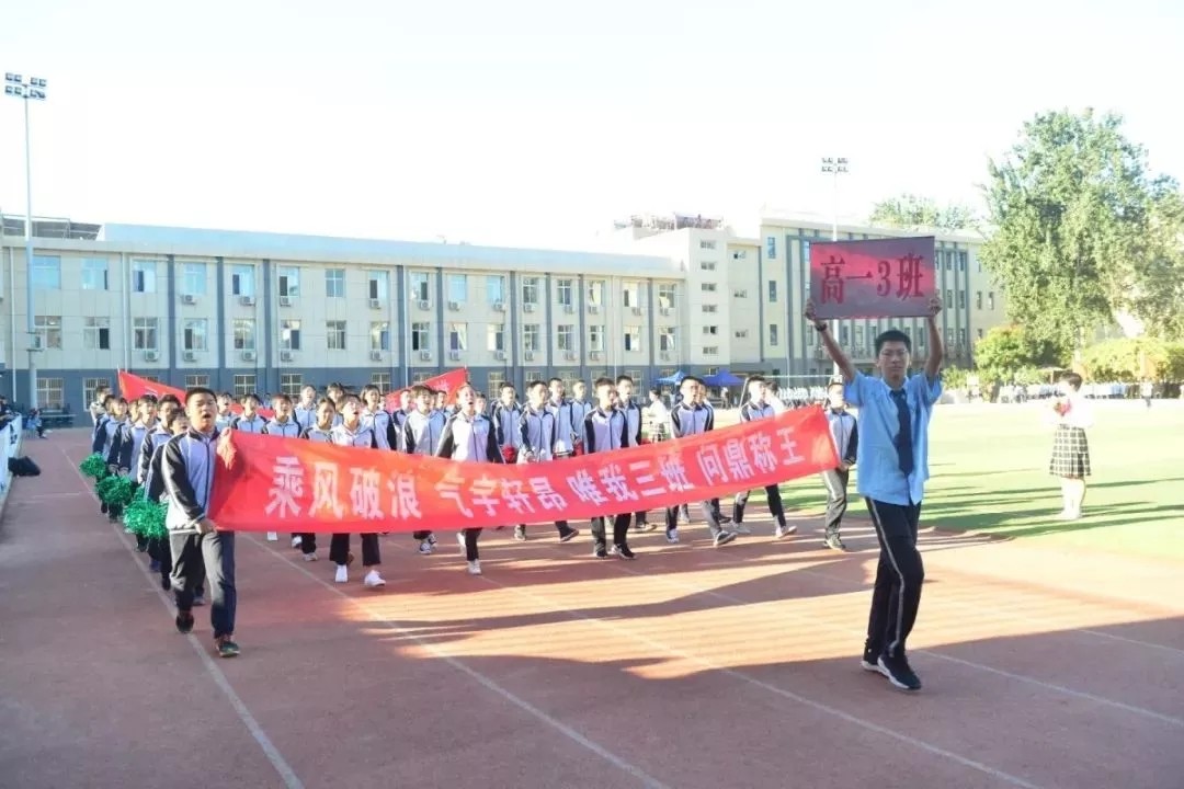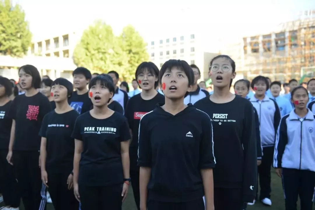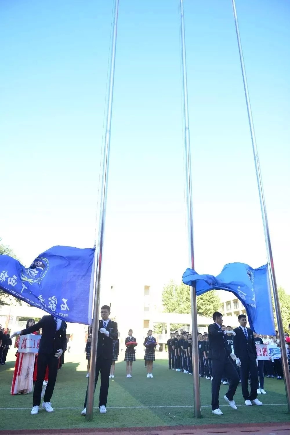 踏着青春的步伐,伴着激昂的旋律,入场仪式正式开始。国旗校旗方阵、花束方阵、旗林方阵、各班班级方阵依次走过主席台。他们朝气蓬勃、意气风发;他们的口号热情洋溢、铿锵有力,充满自信。随风飘扬的红旗也正象征着我校学子的激情与朝气,代表着拼搏进取、勇往直前的弘毅精神。随后,进行了升国旗、校旗活动。