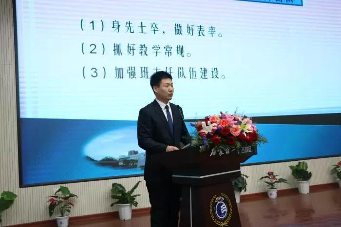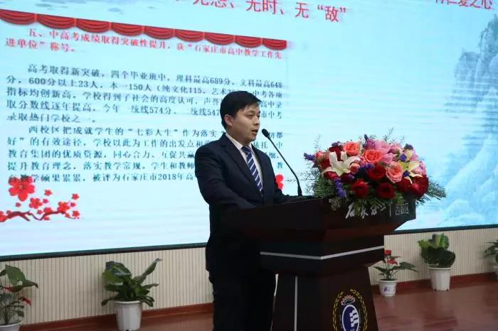张永泽副校长宣布了2018年我校取得的非凡成就。2018年,我校取得了石家庄市文明校园、石家庄市人文特色高中、高中教学工作先进单位、先进基层党组织、市法制宣传先进单位、市文化建设实验校、石家庄先进志愿服务组织、全国软式棒垒球实验学校、全国优秀文学社团等荣誉,中高考取得大捷,女子篮球队、健美操队多次取得桂冠。学校已经成为了省会教育届崛起的明星。