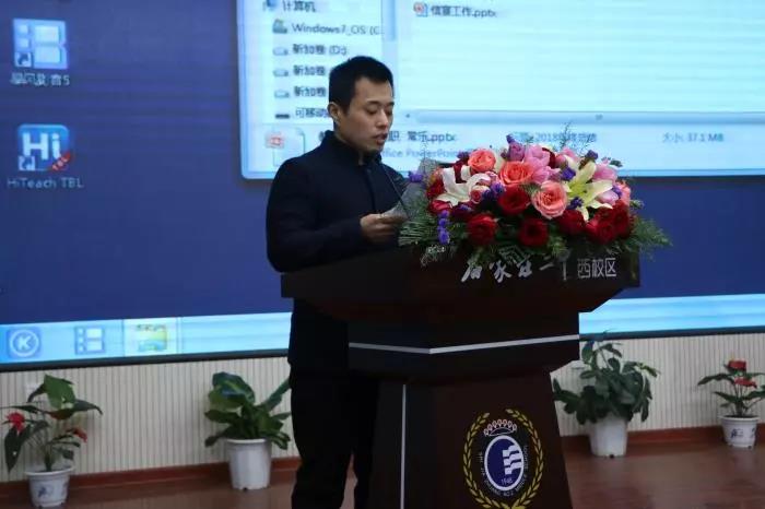 党总支陈怀彦书记致辞。他说,2018年,在教育局的正确领导下,全体教工团结一致,奋发进取,取得了骄人的业绩。新的一年,我们应继续奋斗,努力实现二中西的教育梦。