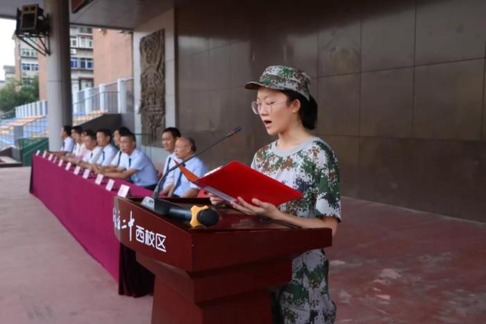 我是高一新生高宁,非常荣幸作为二中西校区2019届学生代表在这里发言。首先,请允许我代表所有受训学生,向即将为我们的训练付出巨大艰辛的教官和老师们,致以崇高的敬意和深深的感谢!