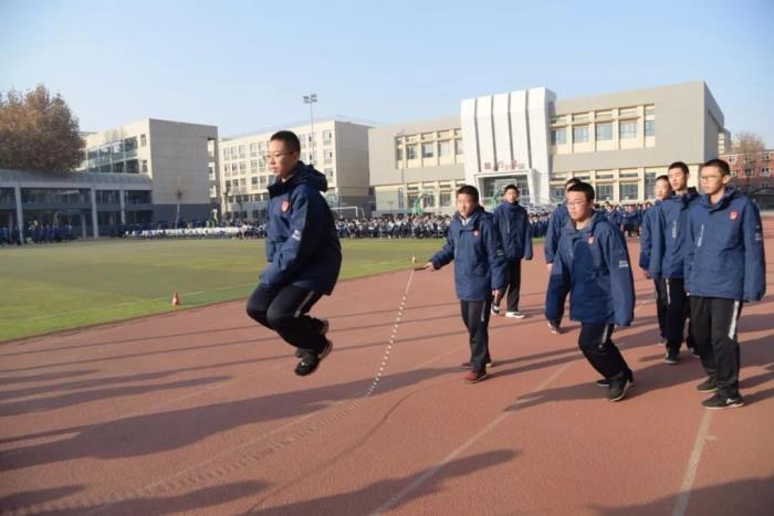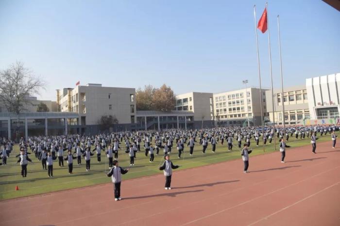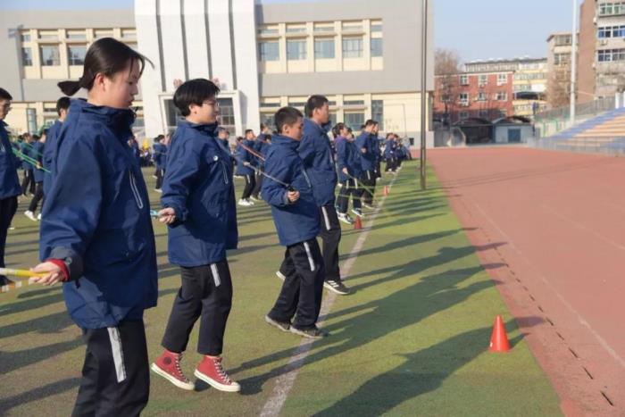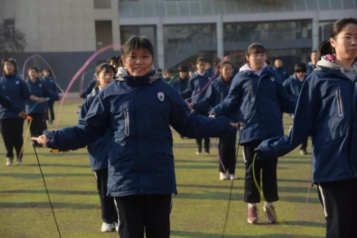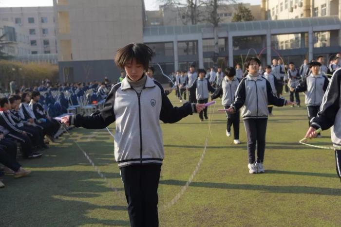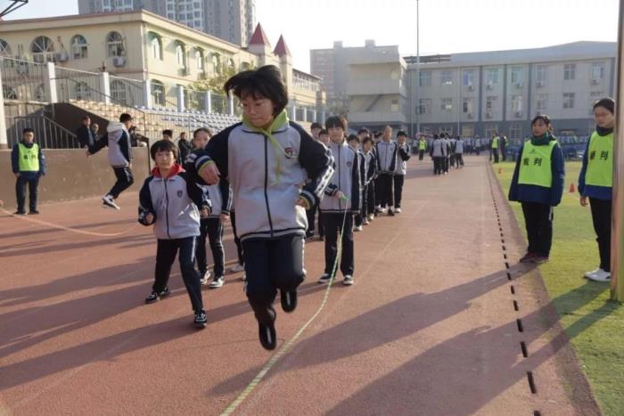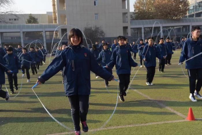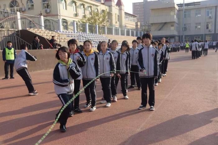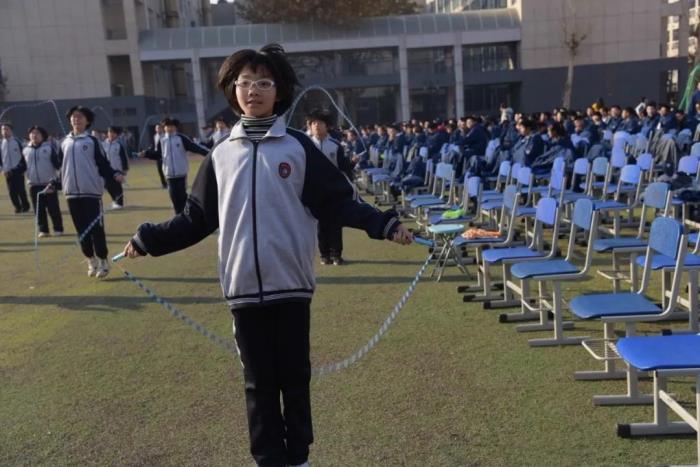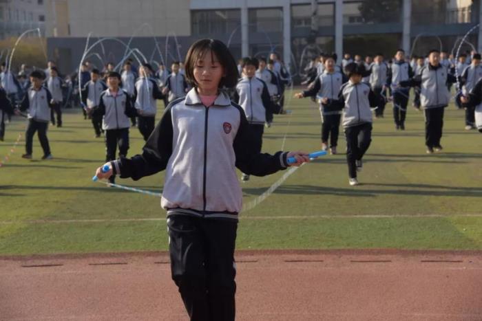 整齐划一的跑步并不是课间操的唯一选择。课间操不再是一种任务,而是成为释放个性的舞台。目前,通过丰富多样的手段引导学生参与运动的兴趣,已经成为优秀学校的共识。12月13日,石家庄二中西校区教育处组织开展了花式跳绳课间操大赛。