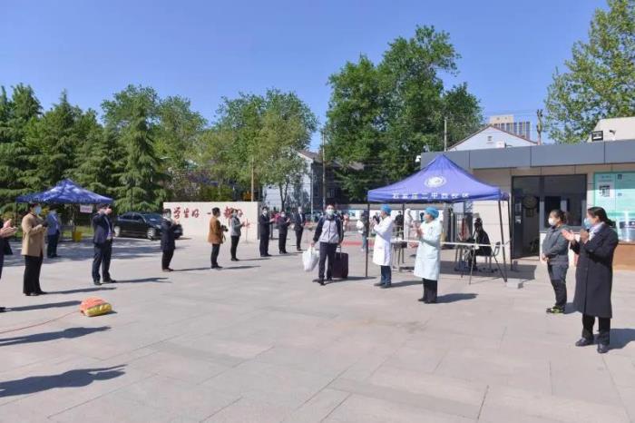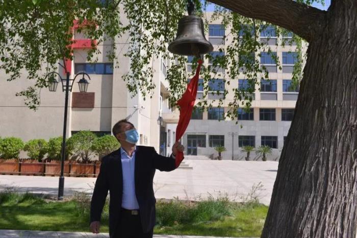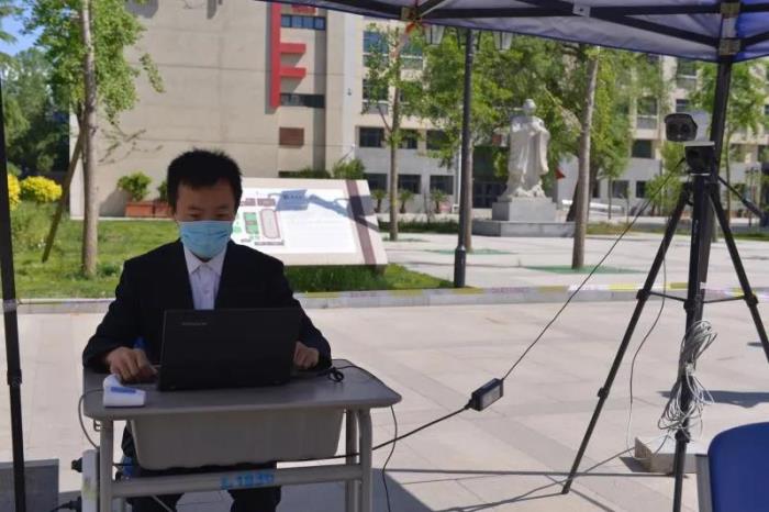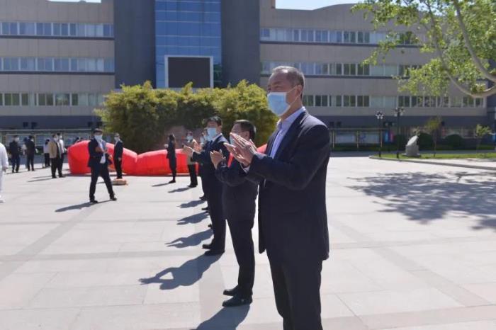 上午十点,孙福山校长拉响钟声,高三学生陆续到来。学校全体领导、高三教师列队鼓掌,为同学们加油鼓劲。在校门入口,设置了红外线体温检测仪和温馨提示板,大家按照要求,陆续间隔通过划定的消毒测温通道,进入校园。安保人员及值班老师分工就位,密切注视着体温监测数据。