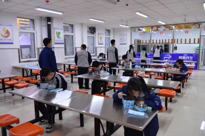 同时,学校在食堂就餐、宿舍管理等方面也做到了严谨细致的安排。食堂每日定时进行全面清洁消毒,人员做好体检记录、进行卫生安全培训,做好供水设施的清洁、消毒工作。师生错时用餐,分地就餐,避免人员聚集。宿管老师严格执行请销假制度,特别是对有发热、咳嗽等呼吸症状的住宿生第一时间进行隔离安置,通知报告观察就诊。