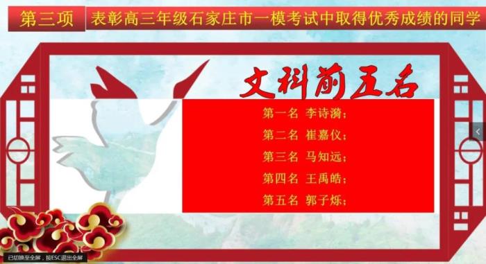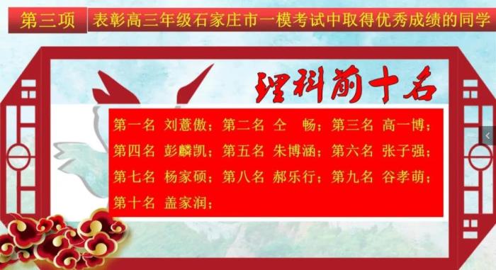 表彰在市一模考试中取得优异成绩的同学