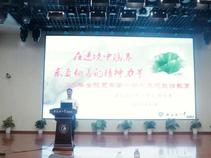他表示,此次疫情考验着大家的自我管理能力,期待二西学子不断跳出舒适区,走向自我约束。只有那些自律的同学,才能在未来的竞争中脱颖而出。希望同学们在今后的学习中志存高远、好学上进,以青春之我、奋斗之我,为民族复兴铺路架桥,为祖国建设添砖加瓦,用青春热血谱写出青春无悔的动人故事,在火热的校园生活中创造出无悔、永恒的青春。张校长致辞的满怀期许与关爱,给同学们以极大鼓舞。