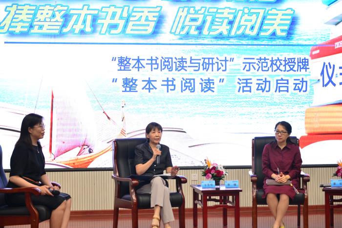 随后,雷斌副社长向我校授牌。授牌仪式结束后,石家庄市教科所语文教研员、河北教育出版社特聘专家李慎,河北教育出版社助学读物编辑室主任姜红,二中特级教师、正高级教师王艾华,就整本书阅读项目进行了研讨座谈。