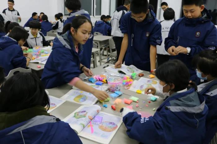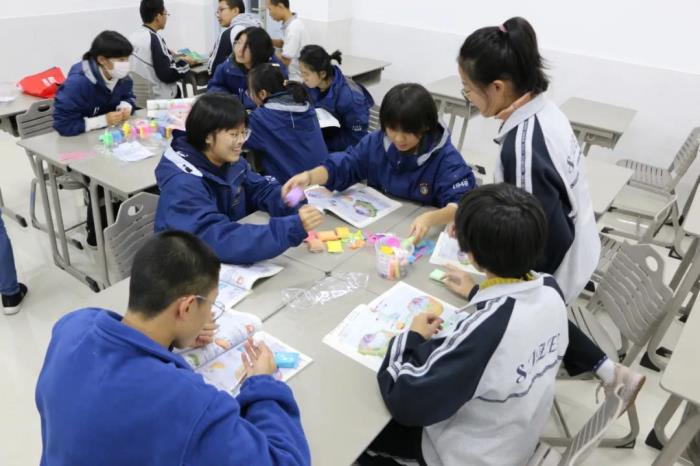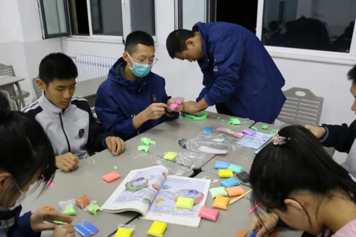 高一年级的学生在课堂上认真学习了真核细胞的相关知识之后,利用课余时间制作真核细胞三维结构模型,体验模型建构的过程。本次活动中,学生以超轻粘土、橡皮泥为材料,根据科学性、准确性以及美观等要求,4~5人一组,合作完成模型制作。
