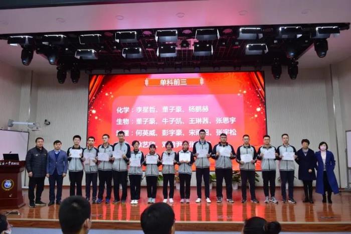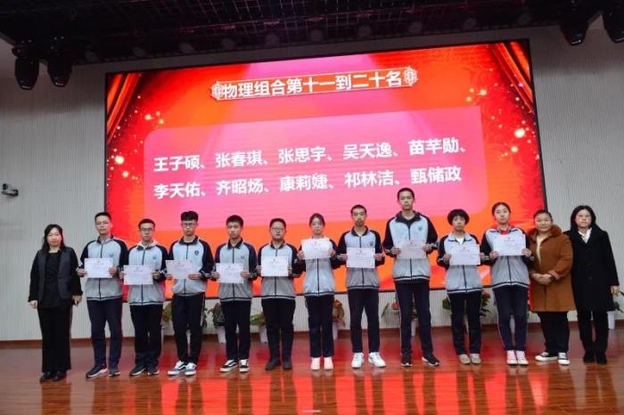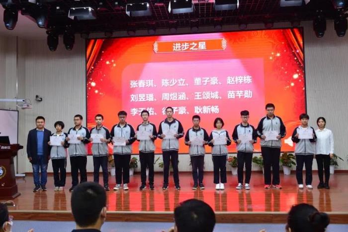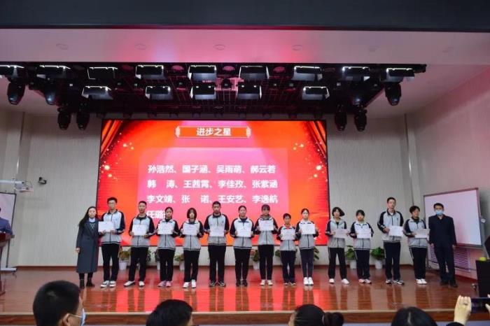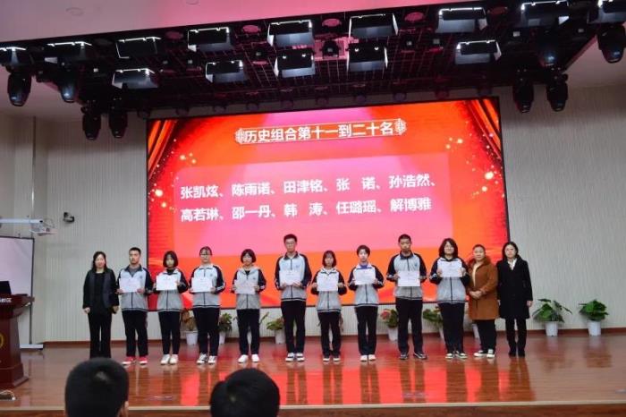 活动开始,表彰了在期中考试中表现优异的同学,包括历史、物理组合前十名、单科前三名、进步突出的同学等等,老师、家长代表为他们颁奖并合影留念,一起感受成功的喜悦