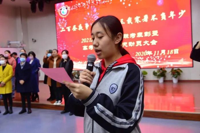 学生代表高三1班王琳茜同学发言并提出倡议。她说,我们要认真对待学习和考试,认真踏实,从每次考试中发现自己的不足,走向那个完美的自我。