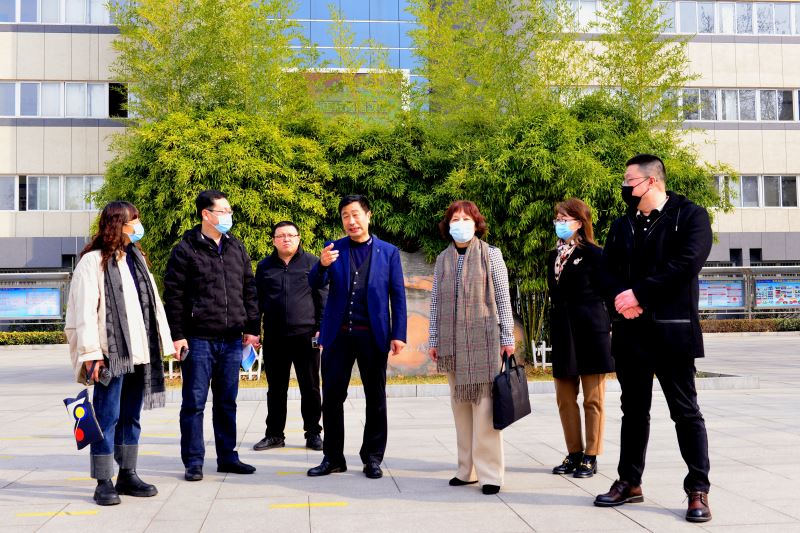 从二中西校区弘毅广场开始,张永泽、樊茹副校长引领赵局长一行参观了富有人文特色的校园,热情向客人介绍了西校区的历史沿革、“弘毅”溯源、杏园群雕、白杜古钟、桐园印记、凤鸣台等校园景观。