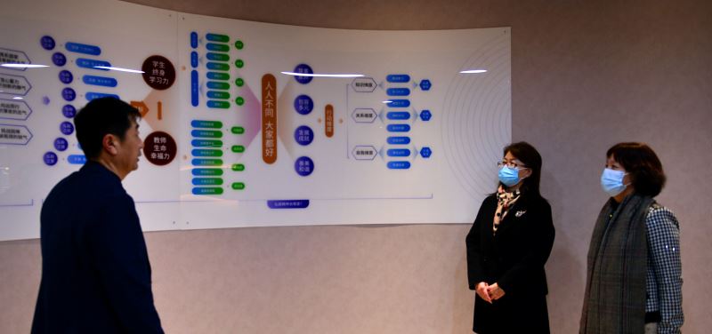 接下来的座谈会上,张永泽副校长首先向赵局长及同行人员介绍了二中西校区秉持的“学生好,一切都好”核心教育理念和“弘毅”精神,重点对孙福山校长倡导提出的“人人不同,大家都好”行动哲学,以“高效能治理、高品位教师、高质量人才”为主要特征的品质教育“二西范式”,提升教师生命幸福力和学生终身学习力的“双力建设”, 以“项目驱动、闭环管理、清单革命、点位思维、数据支撑、拉练督导、持久为功”为管理工具的校园治理体系和学校发展愿景进行了详细解读。
