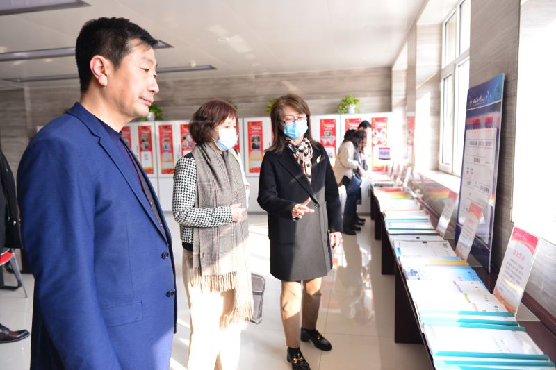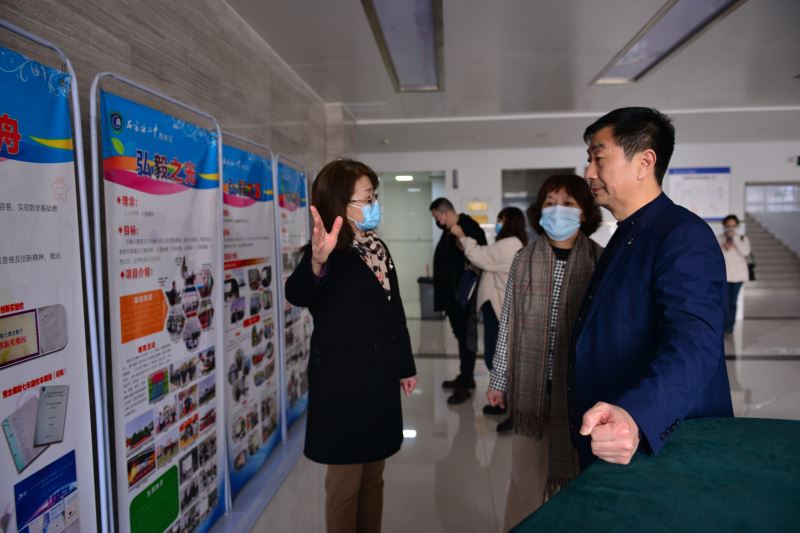 随后移步来到弘毅书院,静谧的环境、浓郁的书香、温馨的茶吧、盎然的绿植、精致的会堂,独具匠心的设计让来宾眼前一亮。紧接着先后参观了西校区生涯规划活动室、名师工作坊和特色工作展示区,全面展示了西校区小课题教研、自主学习实践、弘毅系列项目建设等教育教学创新的特色活动成果资料,引得来宾不时驻足翻看、拍照留存。