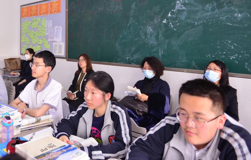 上午10时课堂自由开放,与会老师走进各班教室近距离观摩二中西校区的课堂教学。与会老师们充分感知到以学历案为主导的课堂高效性,被学生活跃、主动的课堂氛围所感染。