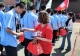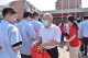 激昂的乐曲声中,全校师生的壮行口号响彻云霄:“高三加油”、“高考必胜”,高三学子昂首阔步,在“我