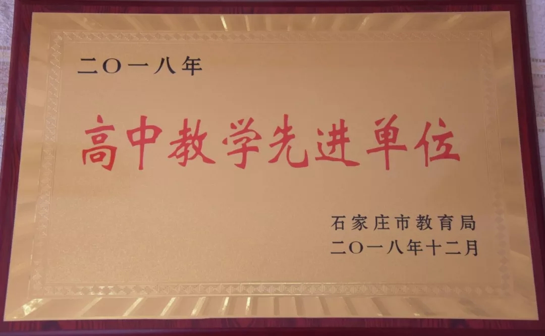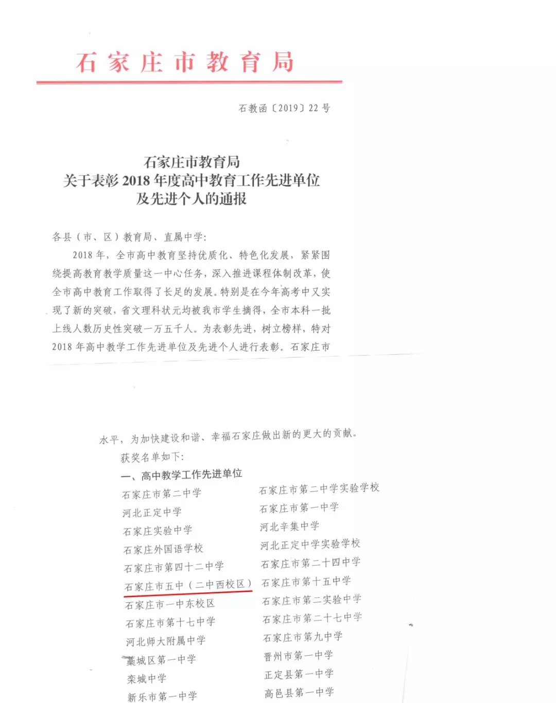 喜讯!石家庄二中西校区被评为高中教学工作先进单位!