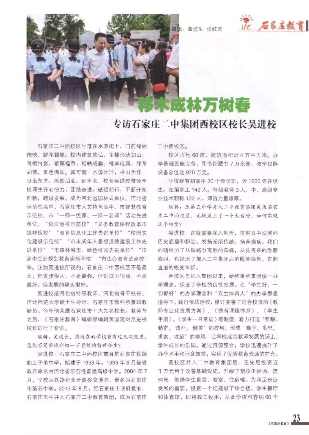 移木成林万树春|《石家庄教育》杂志专访十大知名校长、二中西校区校长吴进校