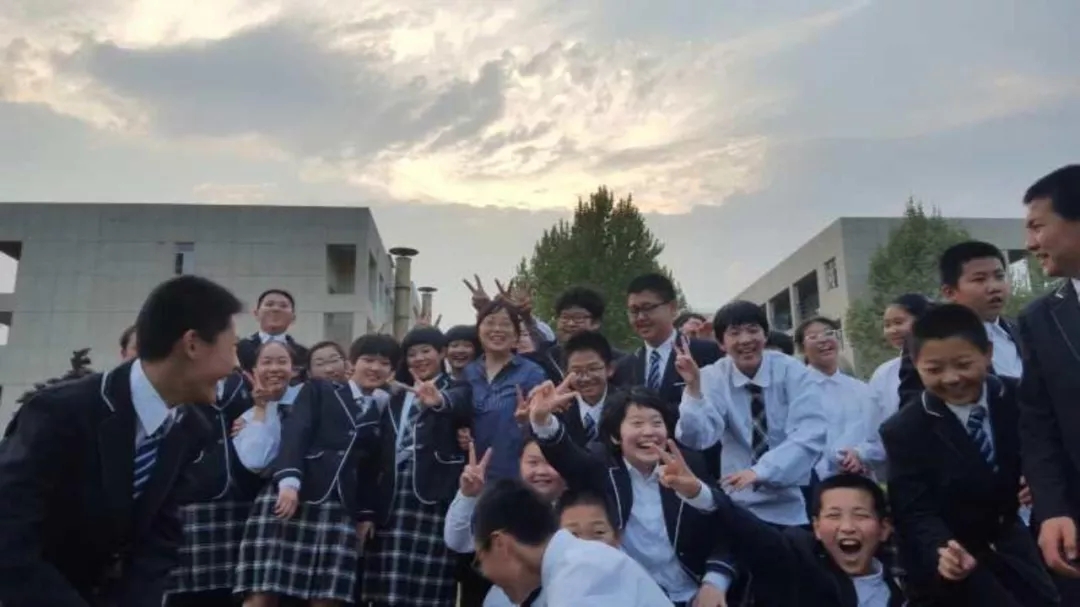 班级是一个温馨的大家庭。学生们和班主任高兴地合影。