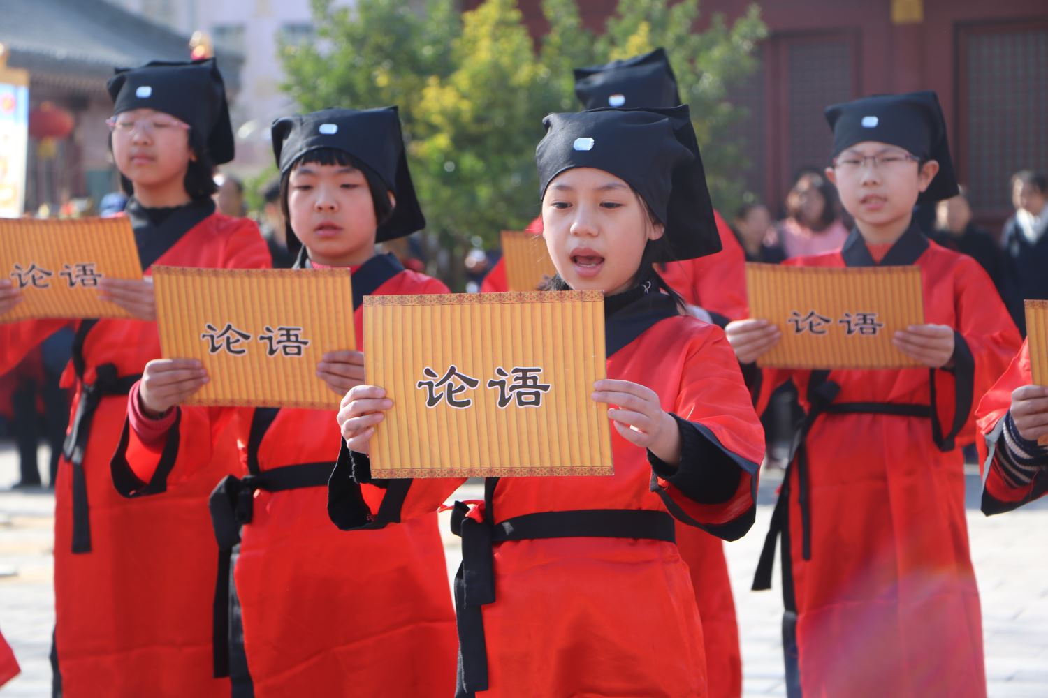 传统释奠礼部分属于非物质文化遗产,由就位、迎神、奠帛、献礼、乐奏等环节组成,大众致祭部分则由现场观礼群众自发按顺序依次进入大成殿,向至圣先师孔子和历代先哲、先贤、先儒行祭拜礼。仪式现场,来自不同学校的学生代表诵读了儒家经典。我校学生代表诵读了《论语》,表达了对孔子的敬仰之情。