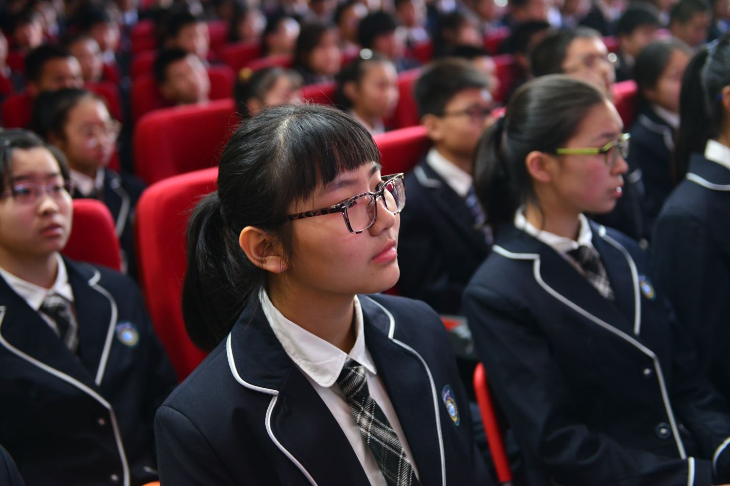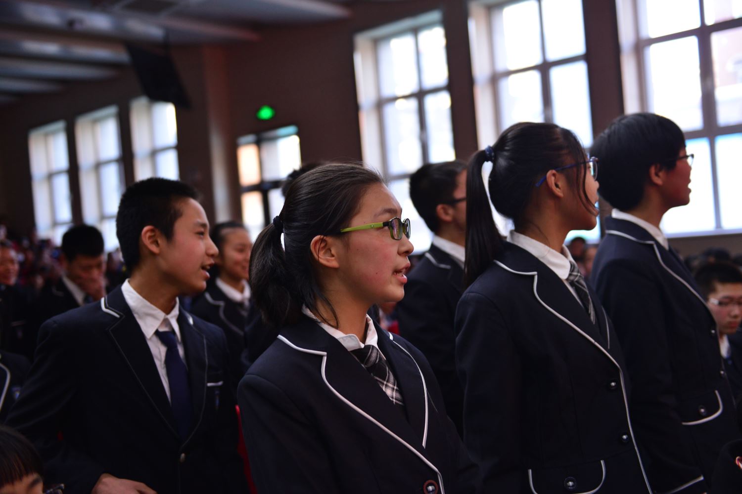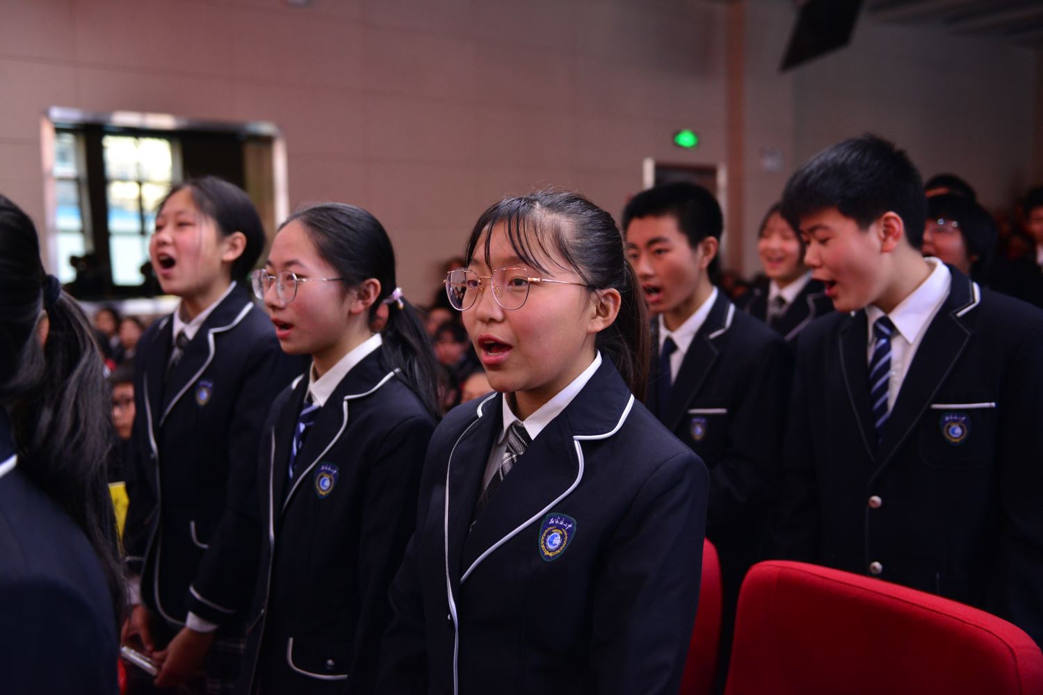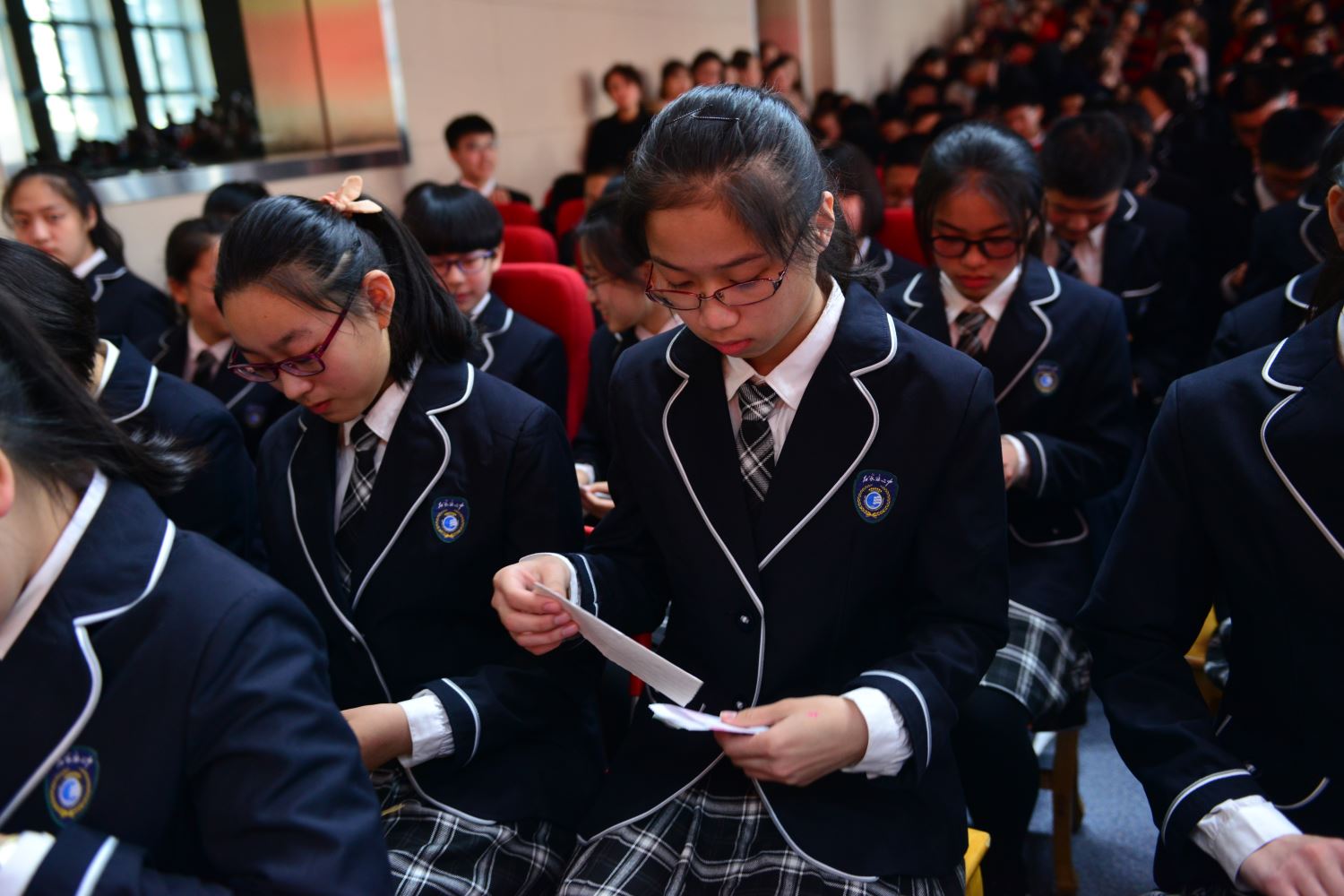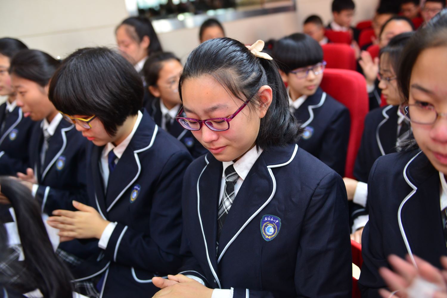 在誓师大会结束后,家长与老师站在报告厅外红毯的两侧,与扬着班旗列队走出的同学们击掌助威。六月,二中西的校园不仅会洒满胜利的花瓣,而且必将果实累累。同学们,挥舞战旗,出征吧!