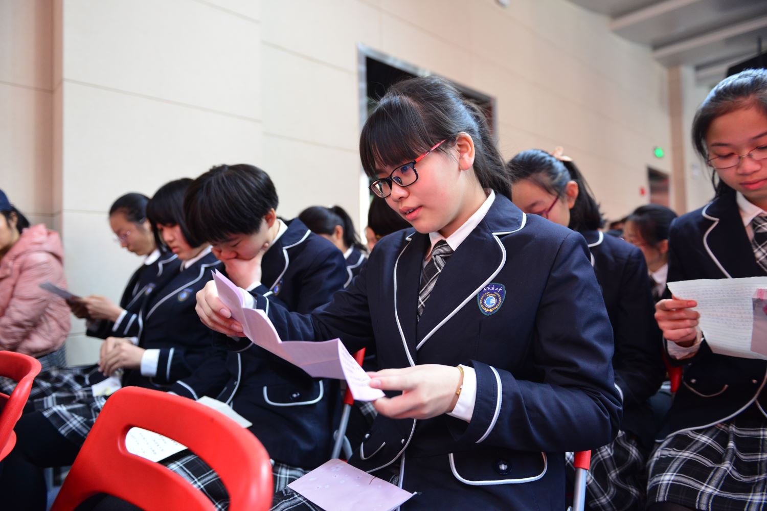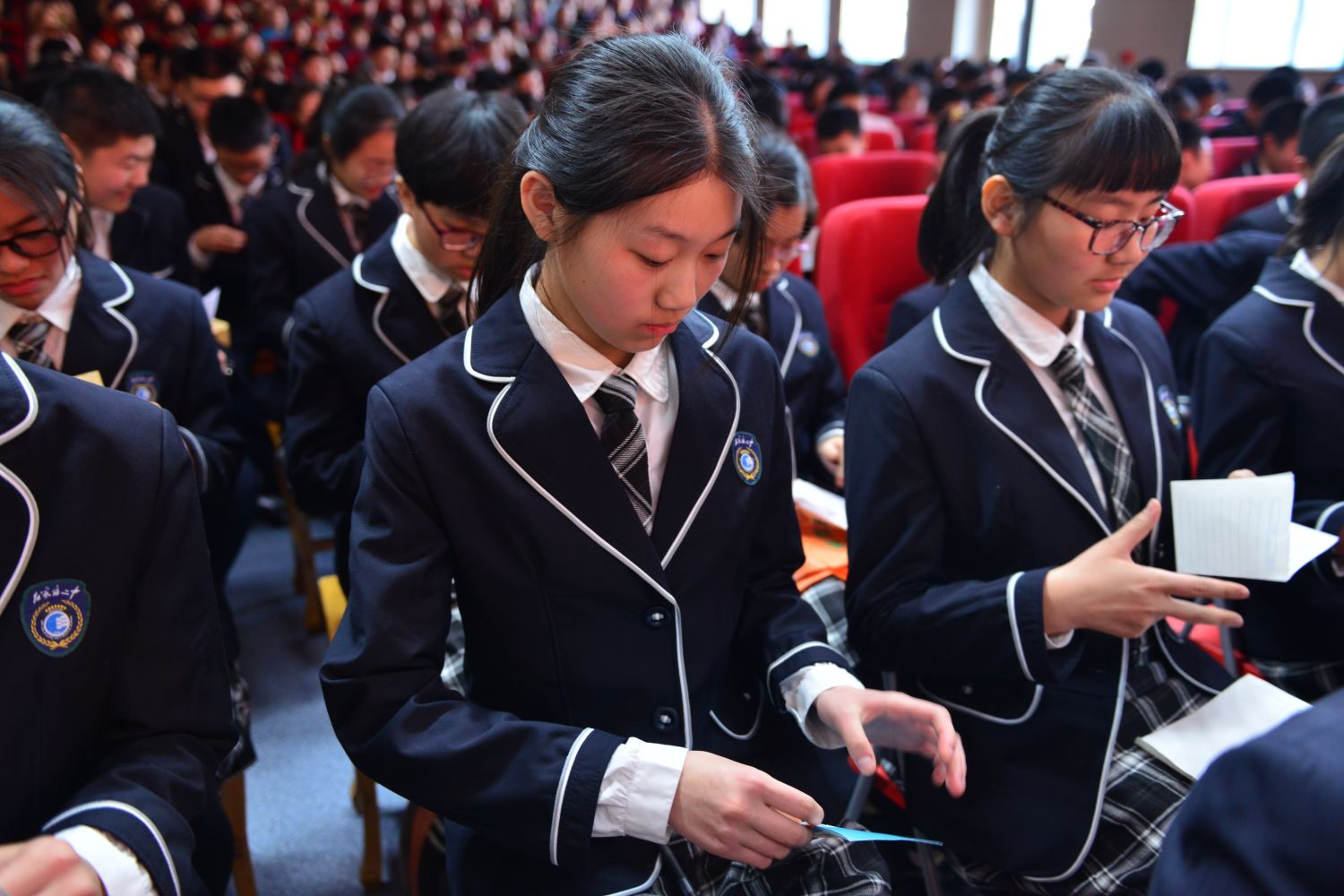 当我们疲惫、彷徨的时候,不要忘记无论寒冬酷暑等待在校门外的身影。家长代表蔡航洲先生发言,表示要做孩子的坚强后盾,为即将踏上征程寻找梦想的学子们加油助威。全体学生观看家长提前录制的加油视频,同时打开家长提前写好的信件。看着家长真挚的祝福,读着激励的话语,很多同学都流下了感动的泪水。