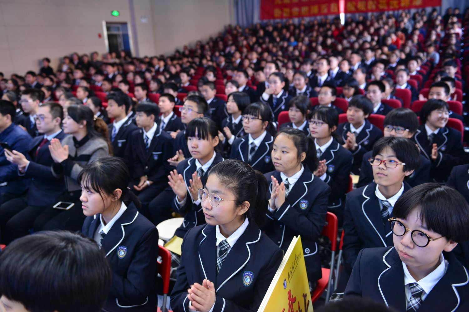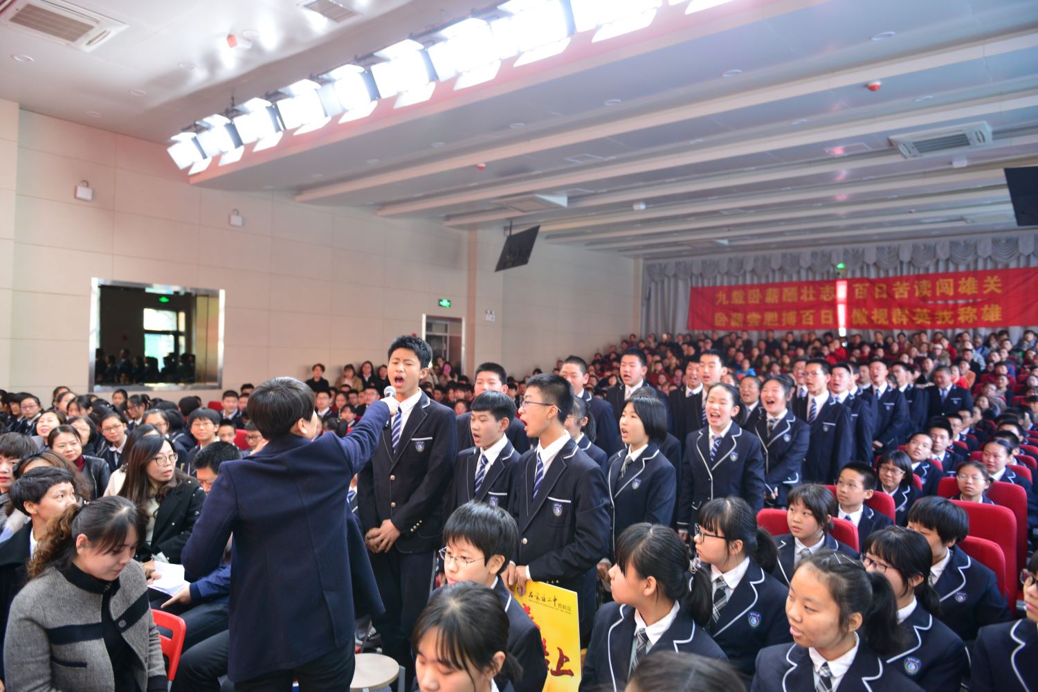接下来,宋佳恒同学代表初三全体学生发言,向学校领导、老师和家长们表达同学们的壮志雄心。年级主任张月霞为大家带来了往届优秀毕业生留下的珍贵学习经验,向大家展示了优秀毕业生于文琴同学的百日计划本。高一优秀学生代表发言,为学弟学妹们介绍备考经验,为他们加油助威。