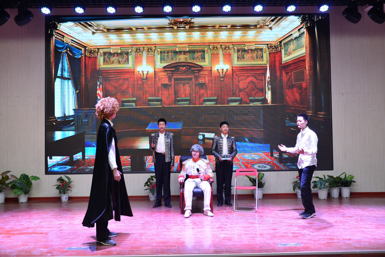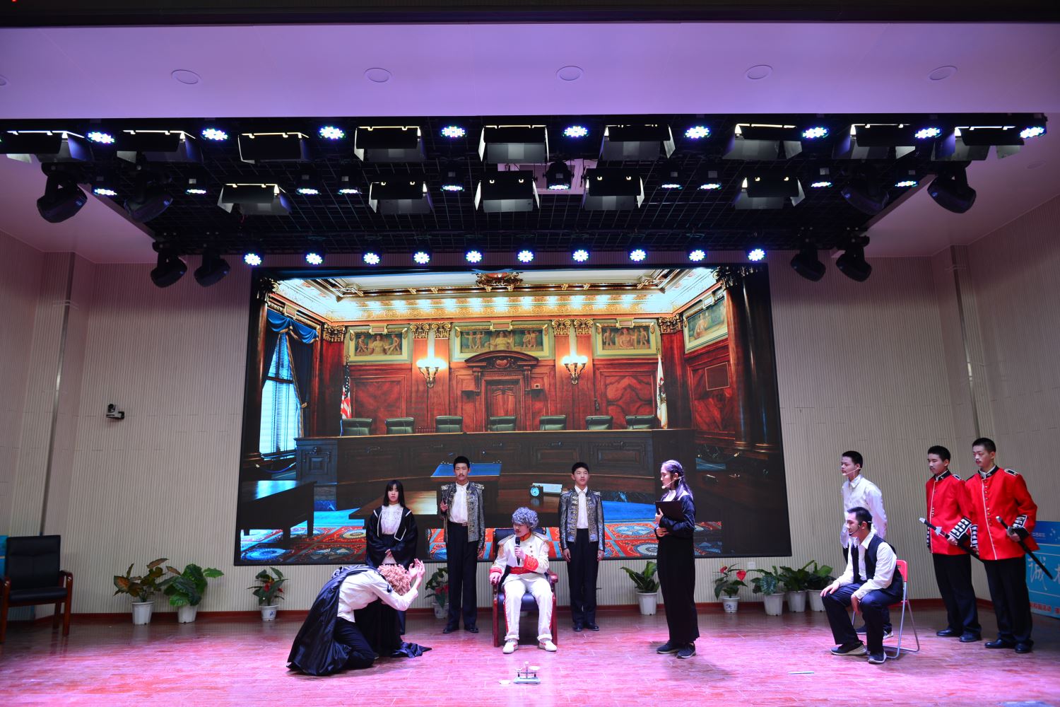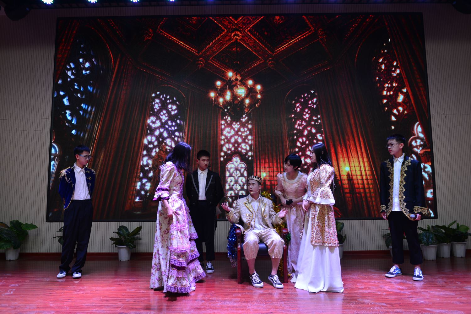 在贴切的幕景和华丽的服装配合下,学生们用丰富的表情,自然的动作和流利的口语释放着他们对表演的热爱和对课本剧中不同人物的理解与阐释。