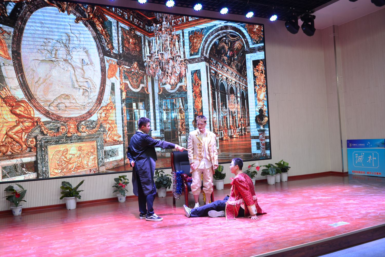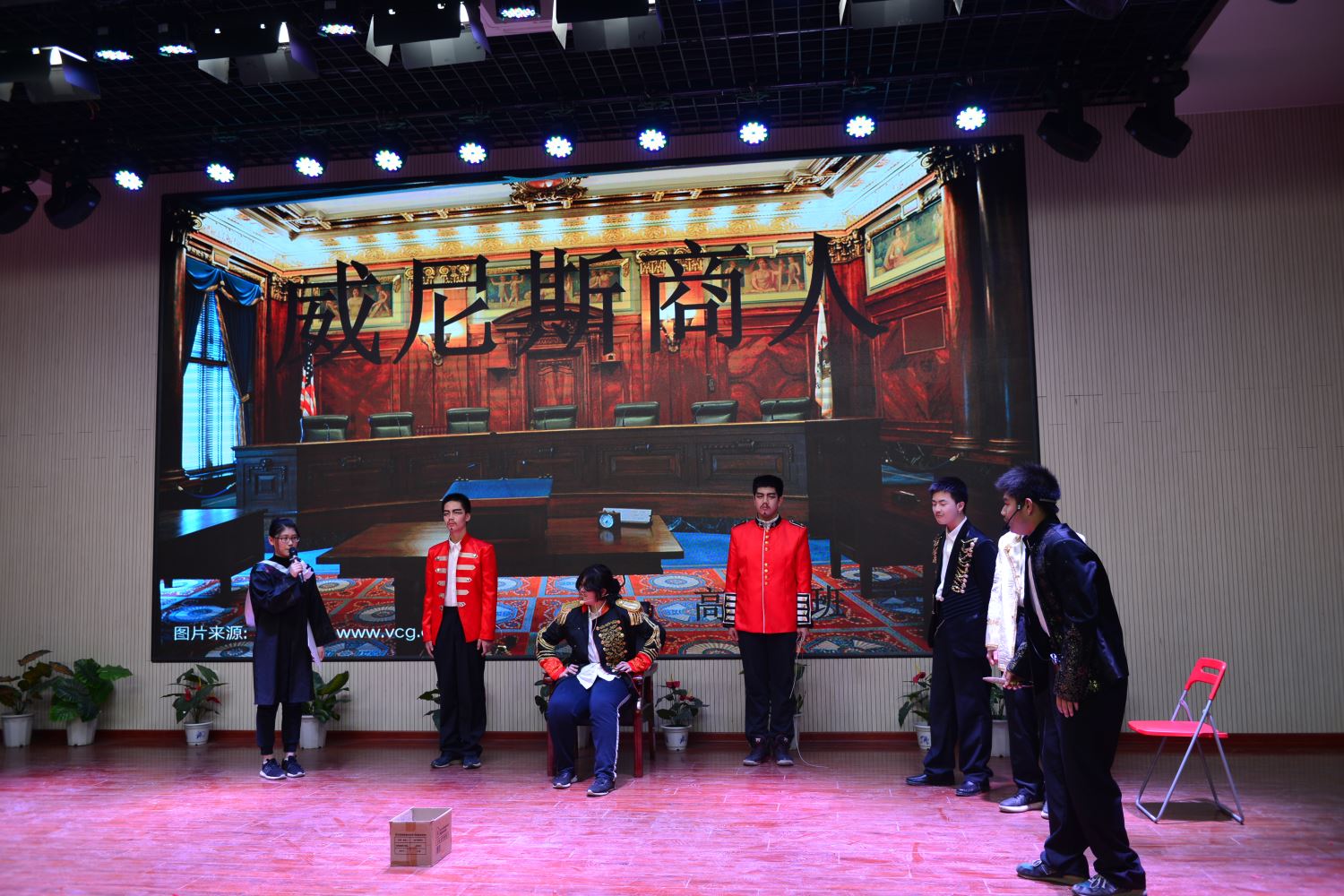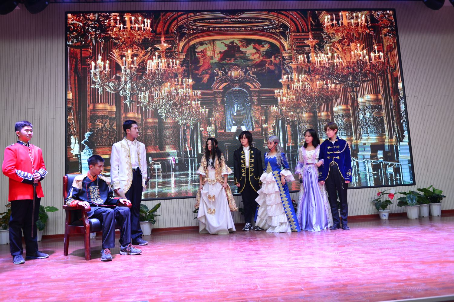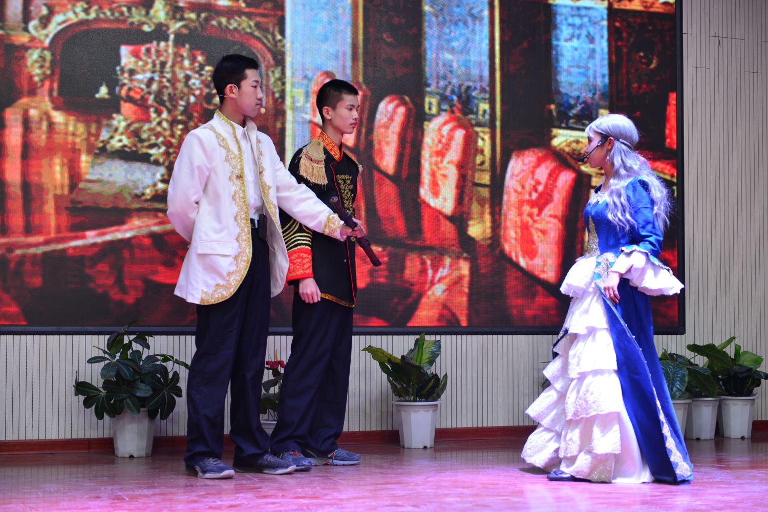 在贴切的幕景和华丽的服装配合下,学生们用丰富的表情,自然的动作和流利的口语释放着他们对表演的热爱和对课本剧中不同人物的理解与阐释。