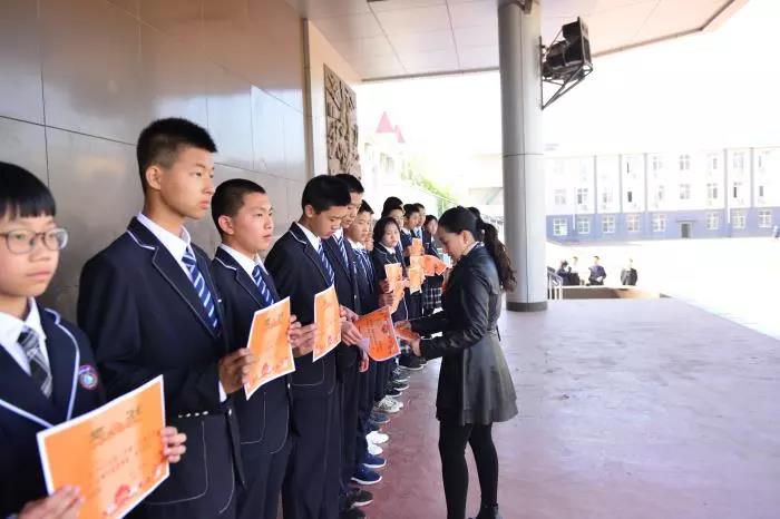 为“交通安全知识竞赛”中的获奖同学颁奖