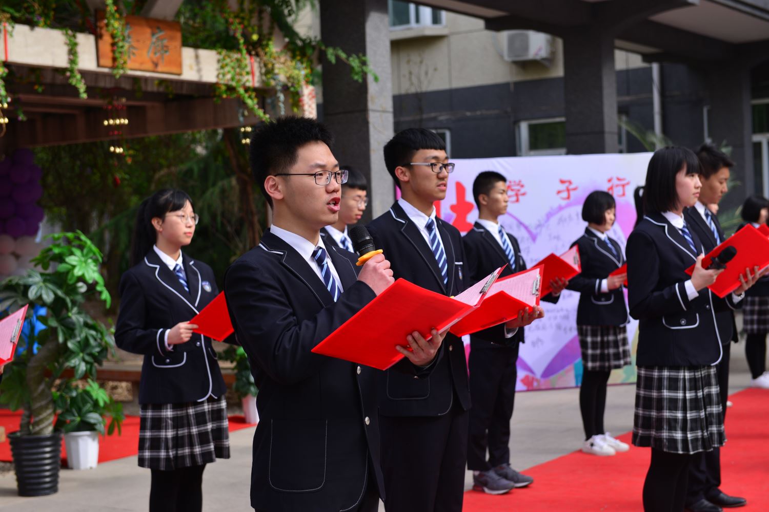在紫藤廊旁,成人仪式正式开始。学生代表表达心声,为大家带来朗诵《十八岁的青春,我们来了》。十八岁,朝气蓬勃,清新芬香;十八岁,指点江山,斗志昂扬。十八岁,是人生旅途中的又一个里程碑。