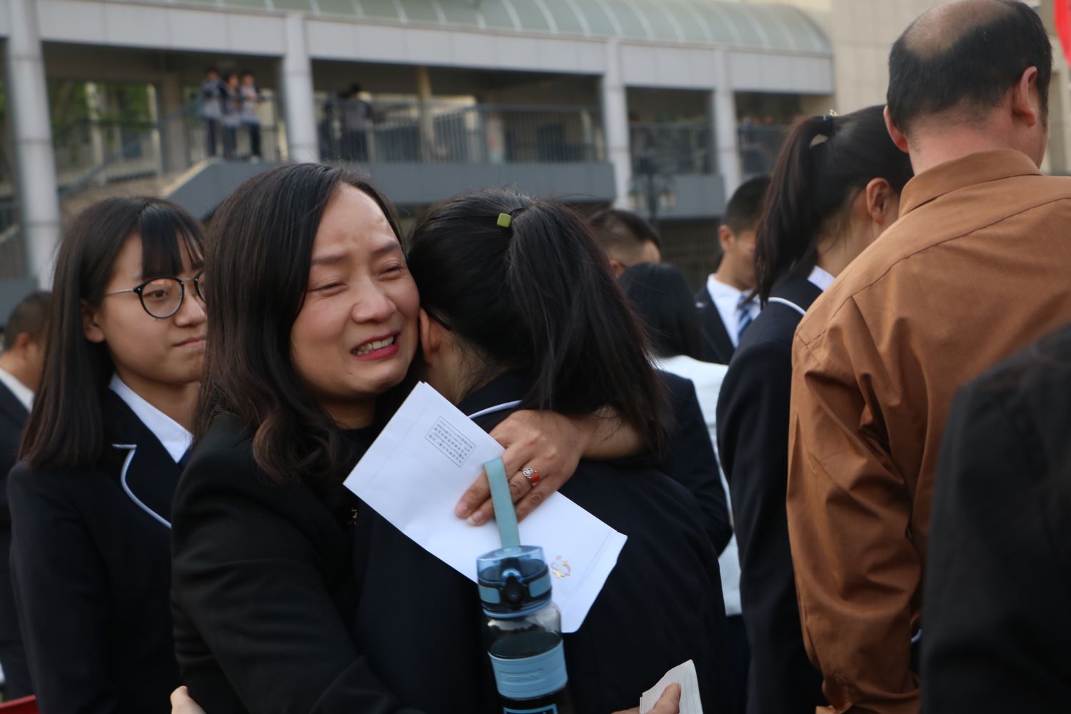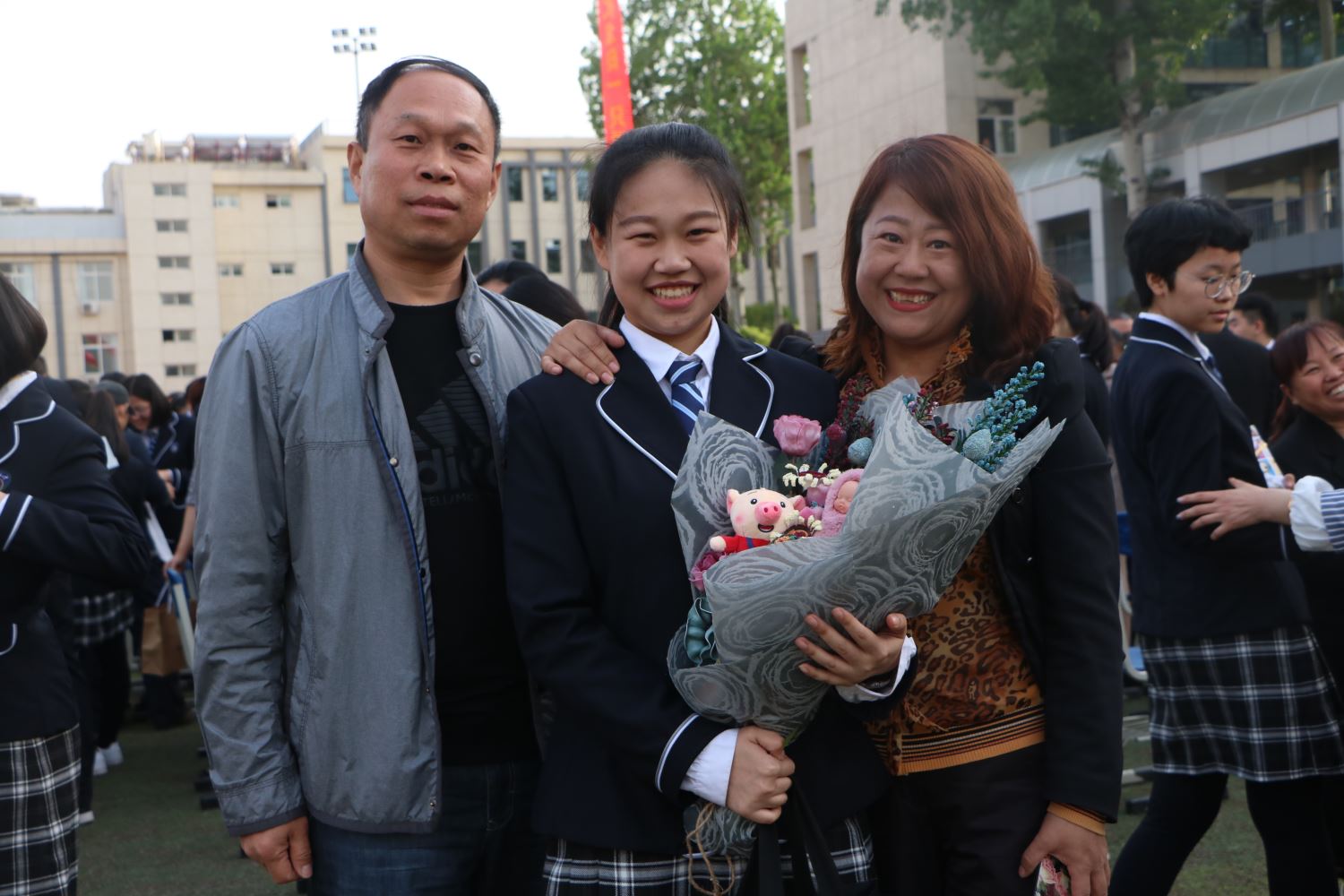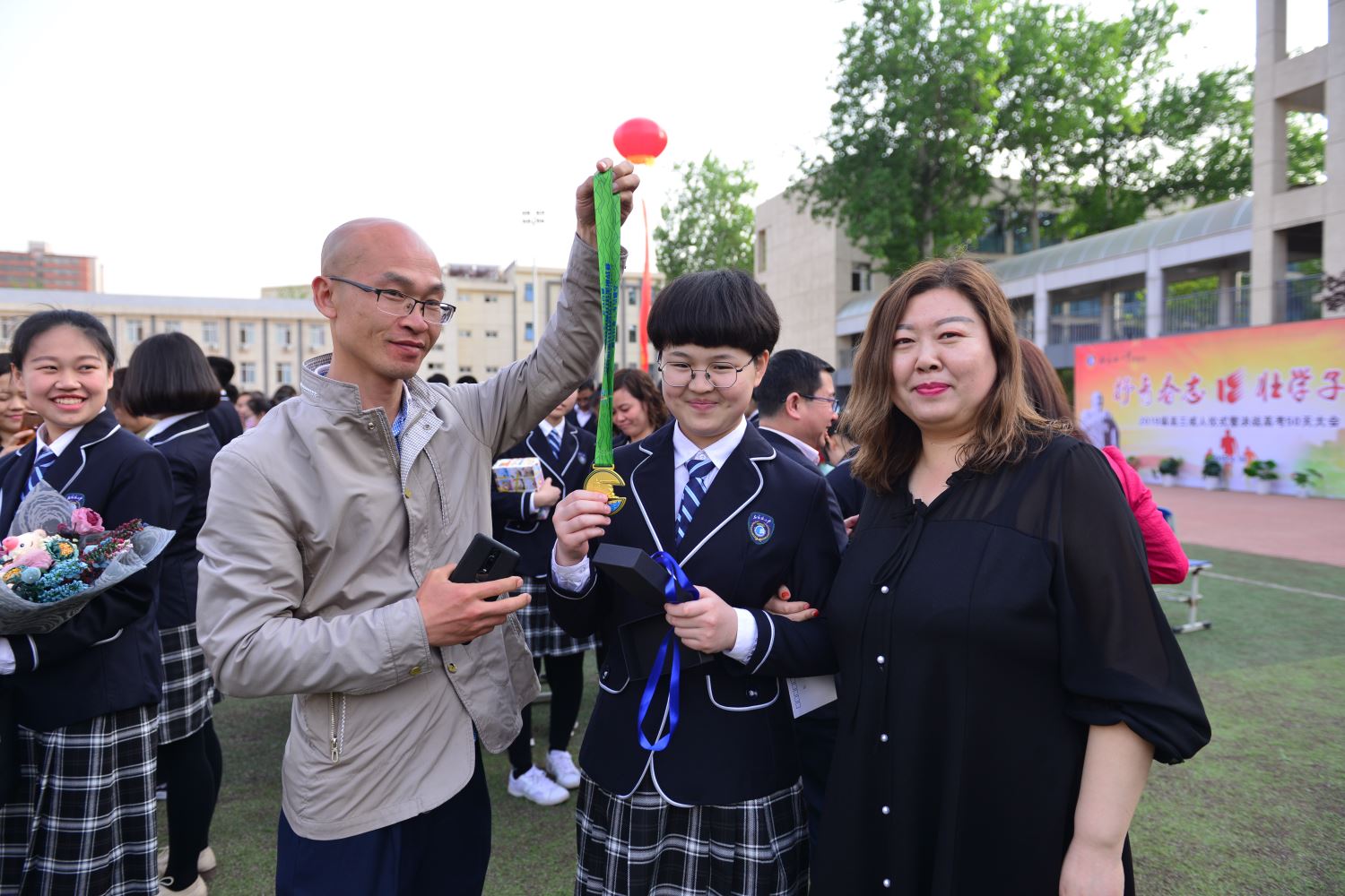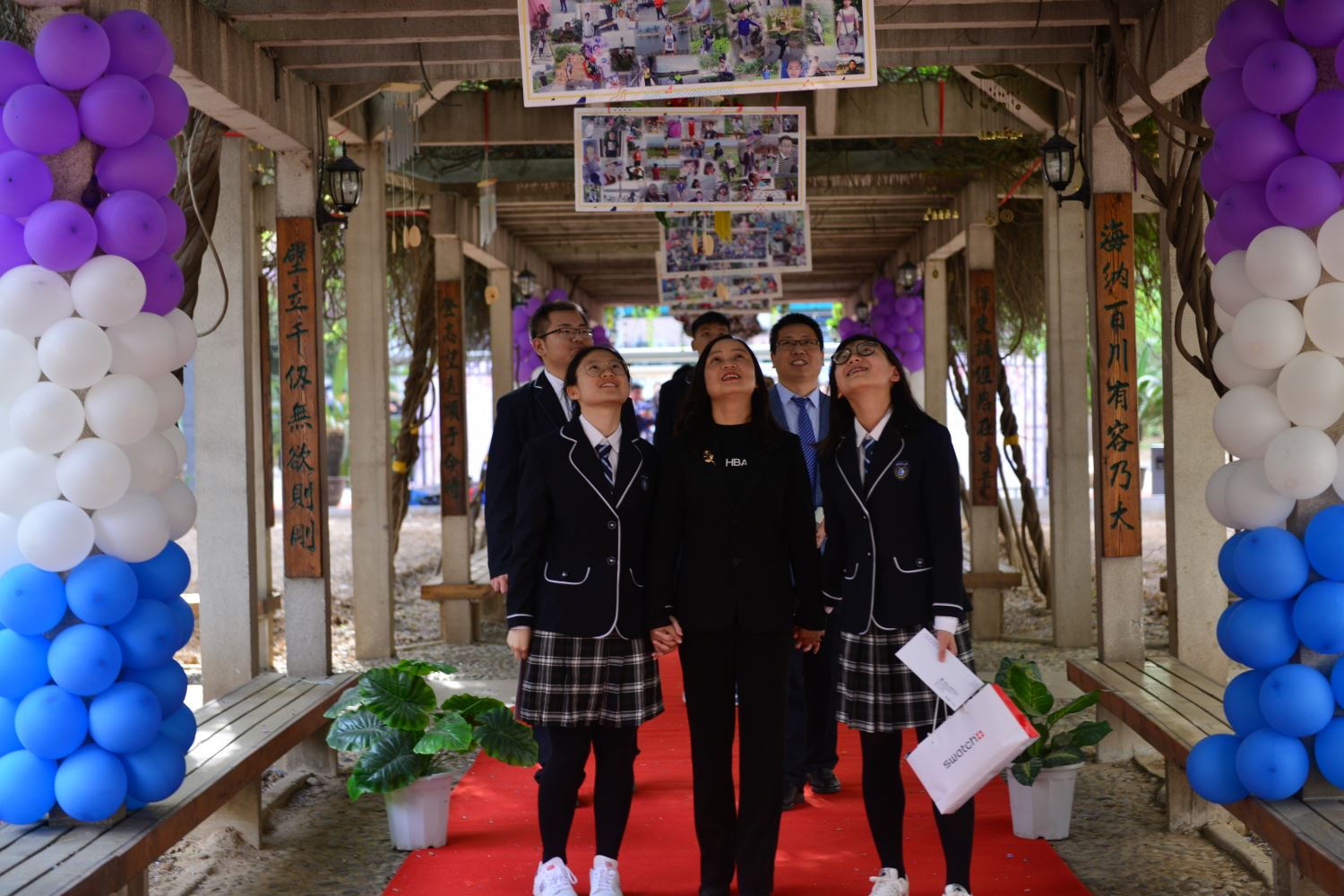 随后,家长牵着孩子的手,一同踏上红地毯,穿过紫藤廊、跨过成人门,一起奔向人生新的起点。学校领导和老师们在成人门两边和同学们一一击掌,庆祝这个激动人心的时刻。