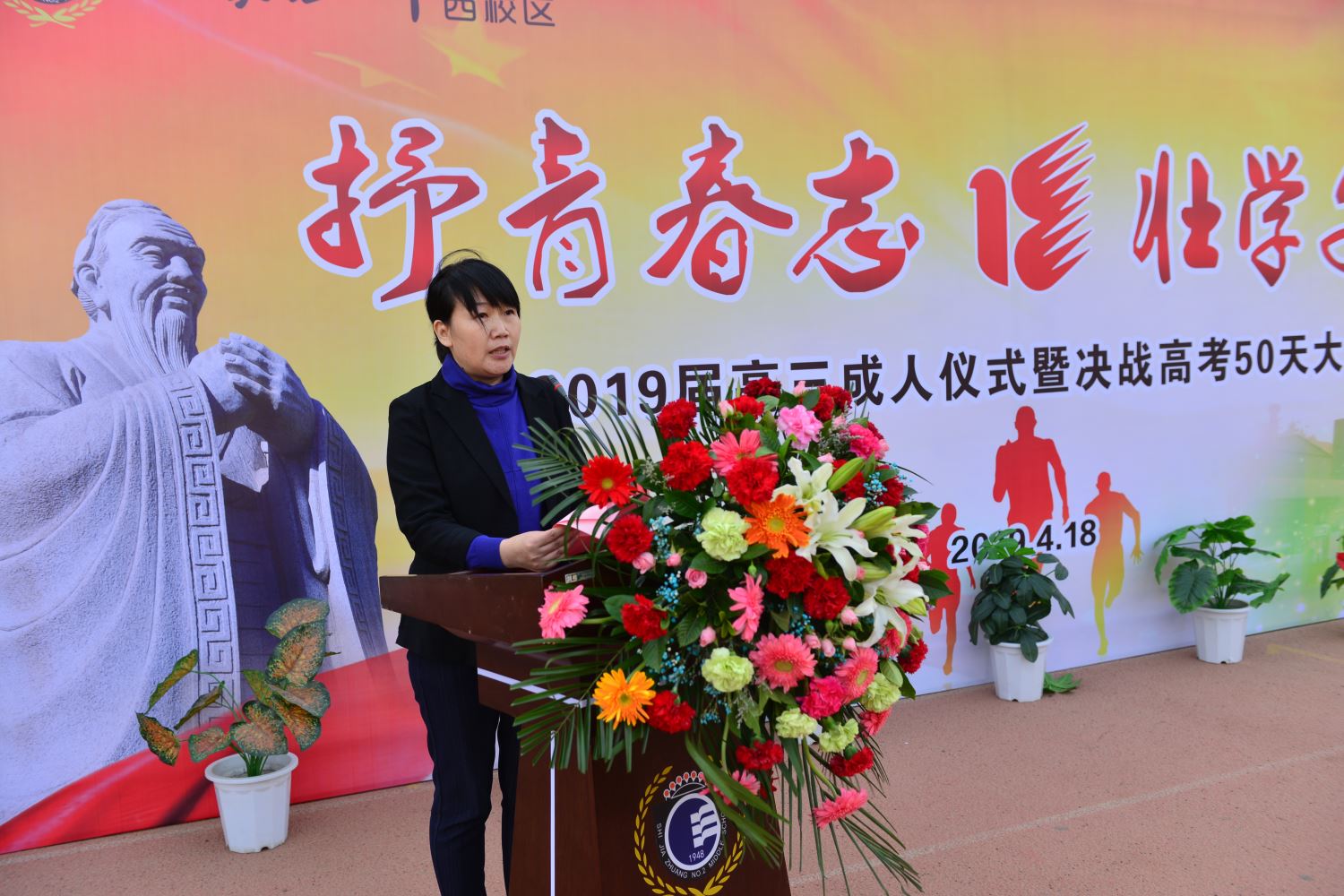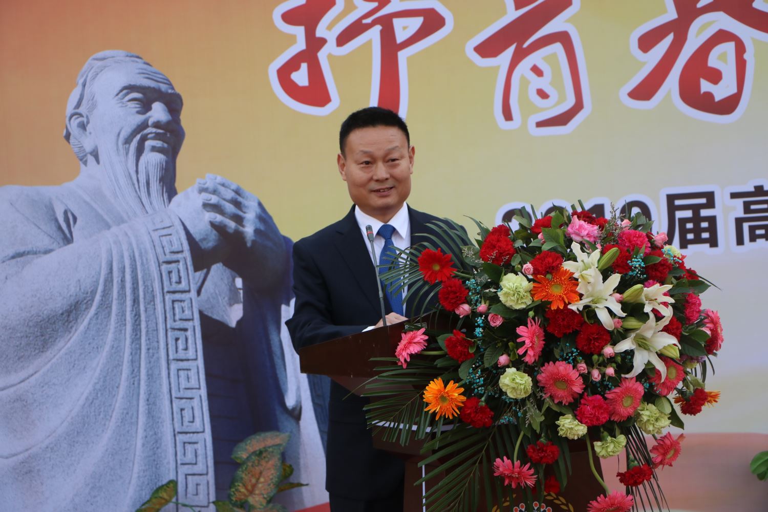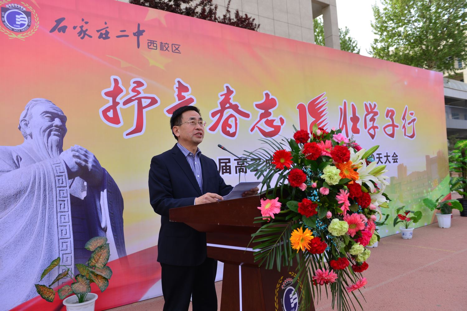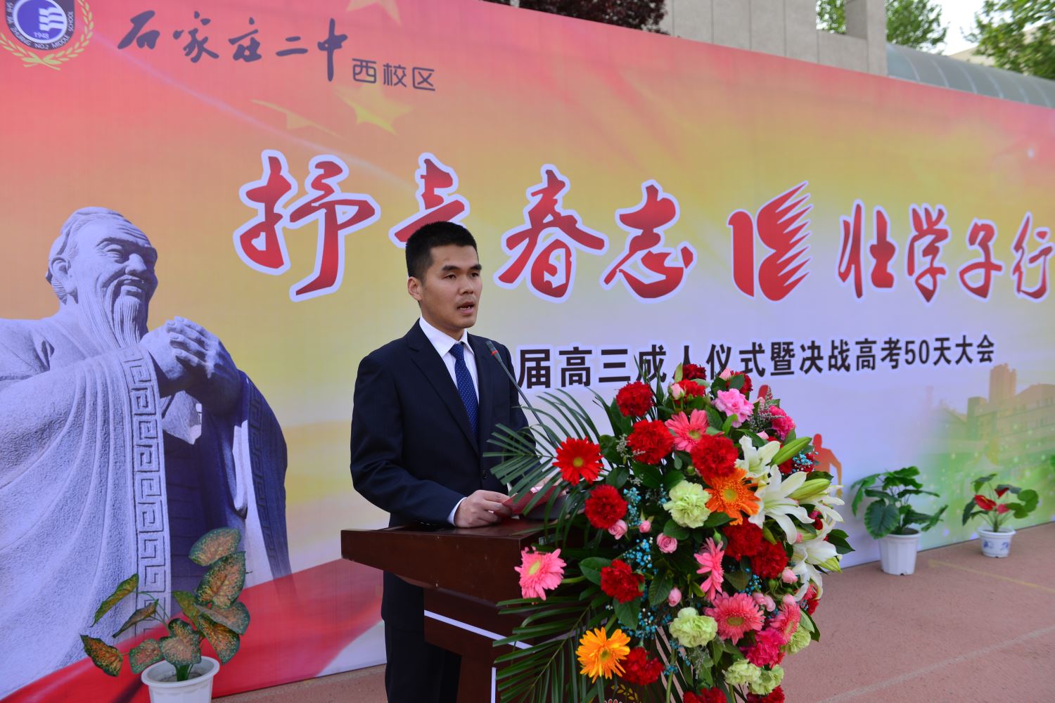 成人以后,遇到的第一个挑战就是参加高考。高考,就是一场特殊的成人仪式。邢玉彬主任代表高三年级全体老师发言,希望同学们要用行动、用成绩、用荣誉回报家长、老师、学校和社会。全体老师都将为同学们祝福,为他们加油鼓劲,为他们的高考决战保驾护航。