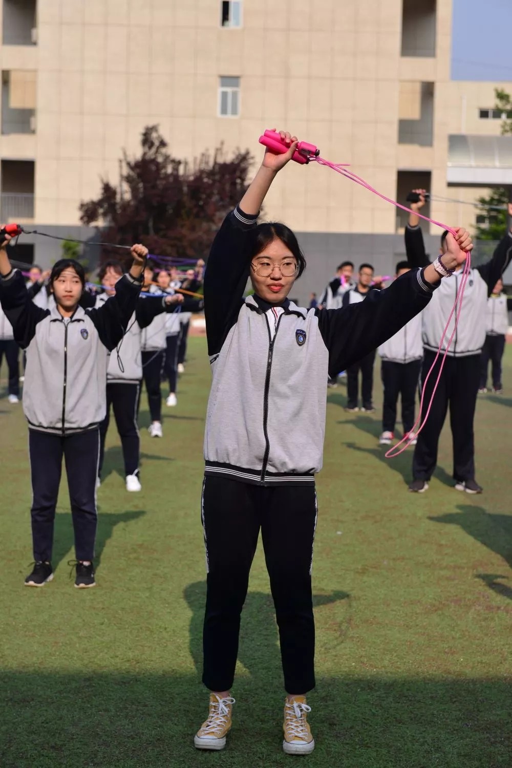 趣味运动会是快乐的盛宴、体育的欢歌、青春的绽放。运动会上团结、积极、健康、向上的旋律带给大家深深的感动,带给学生们体质与心智的共同成长。本次趣味运动会设置有花式绳操、十人十一足、贪吃蛇三个项目。