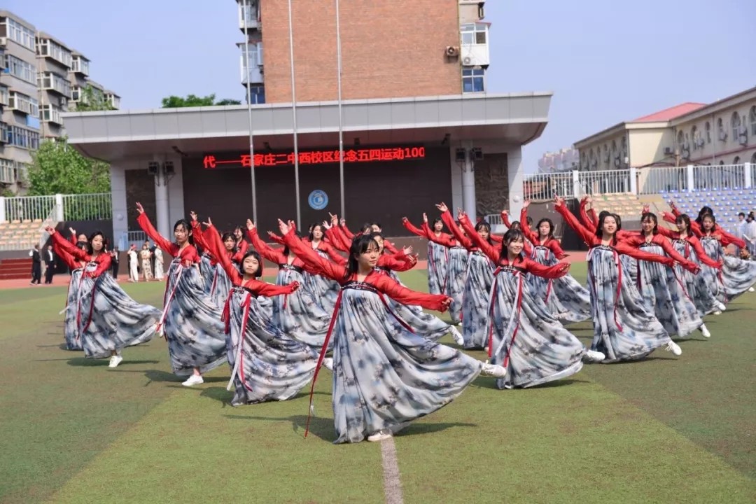 晨风和煦,绿意浓浓,满怀热切的期盼,我们迎来了五四青年节。今年是五四运动100 周年。 100 年间,斗转星移,沧海桑田,但五四精神始终璀璨、依旧青春。代代热血青年高举五四运动的精神火炬,用奋斗镌刻青春,以担当创造历史,书写了中华民族迈向伟大复兴的壮丽史诗。为纪念五四运动, 5 月 4 日,石家庄二中西校区举行了“青春心向党,建功新时代”主题系列活动。