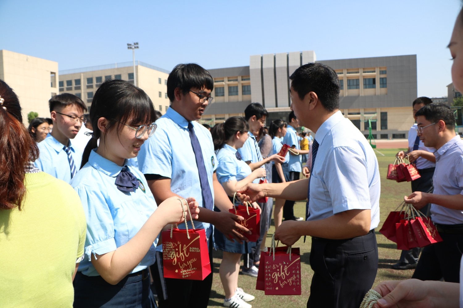 吴进校校长等学校领导为学子送祝福
