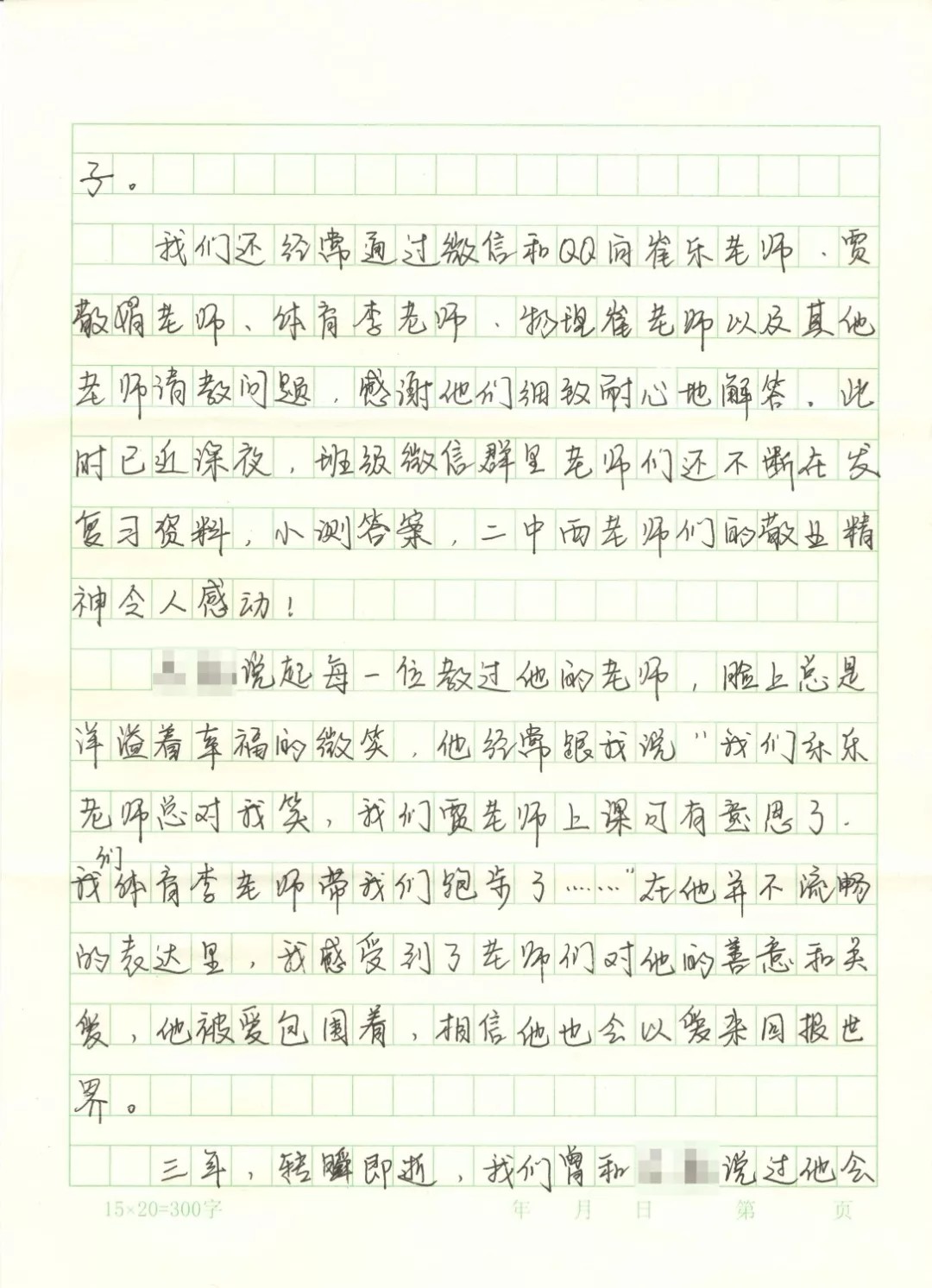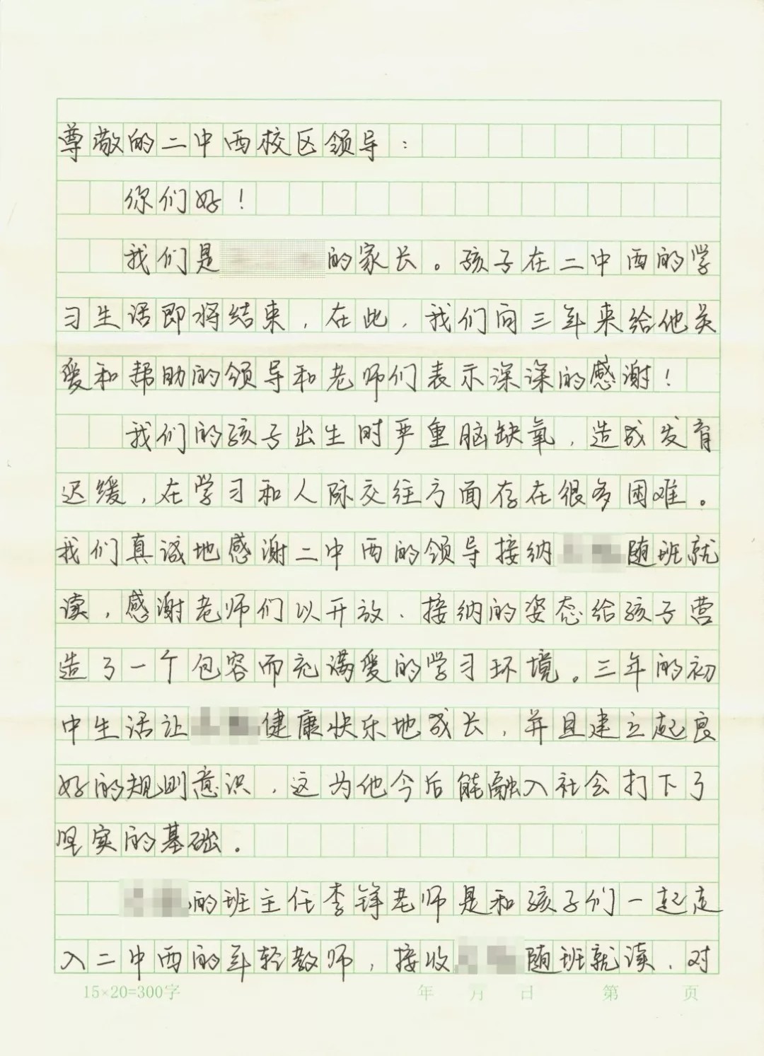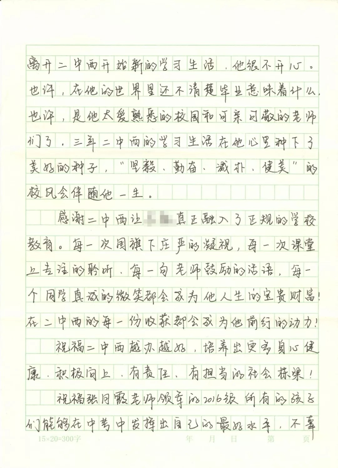 家长致二中西亲笔信|他被爱包围着,也将会用爱报答世界