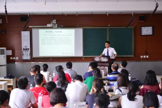 吴进校校长和张永泽副校长热情接待了来自佛山四中的教育界同仁。在座谈会上,张校长向来宾介绍了我校校史、办学理念、校园文化等各方面情况,并同时向考察团介绍了我校近年来办学取得的喜人成绩。高三年级邢玉彬主任从基本学情、成绩目标、备考活动、教学研究等方面介绍了2019届高三的备考经验,同时介绍了我校科学高效的教育教学及管理机制。