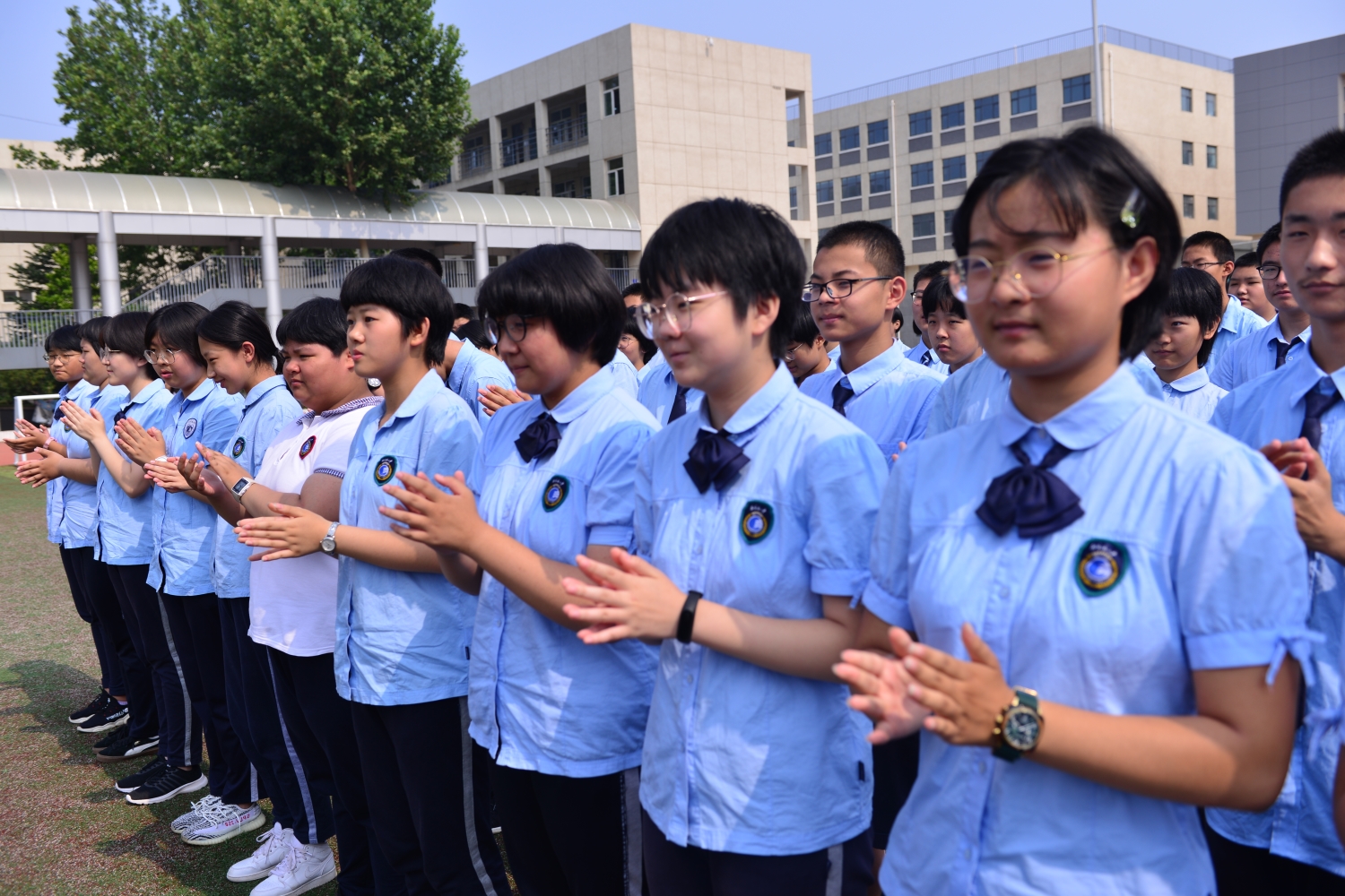 在全体师生热烈的掌声和响亮的口号中,初三年级张月霞主任带领全体学子昂首阔步,满怀自信地走入会场。雄壮的国歌响起,同学们仰望冉冉升起的国旗,心潮澎湃。