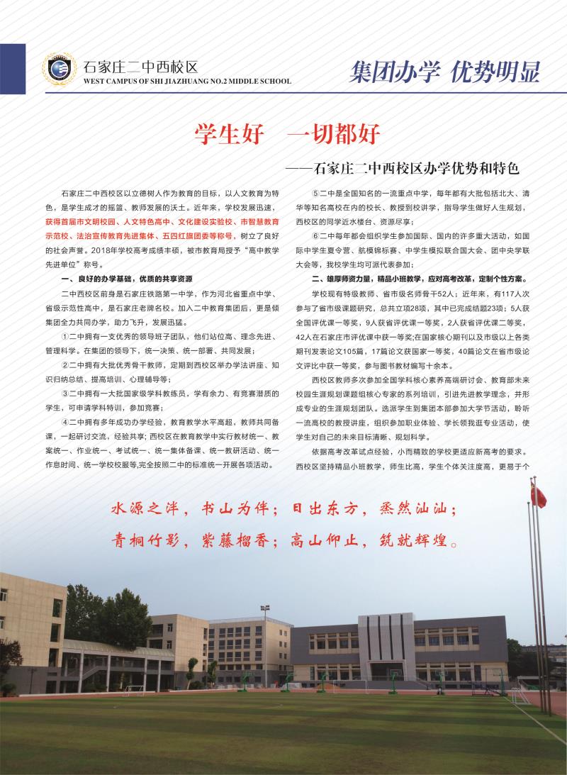 | 地址: | 石家庄二中西校区位于石家庄市新华区水源街109号 乘坐11、75、68路公交车到合作路东口站下车即到。 |