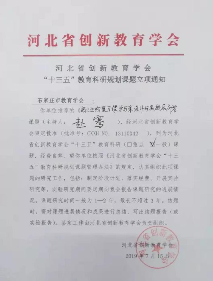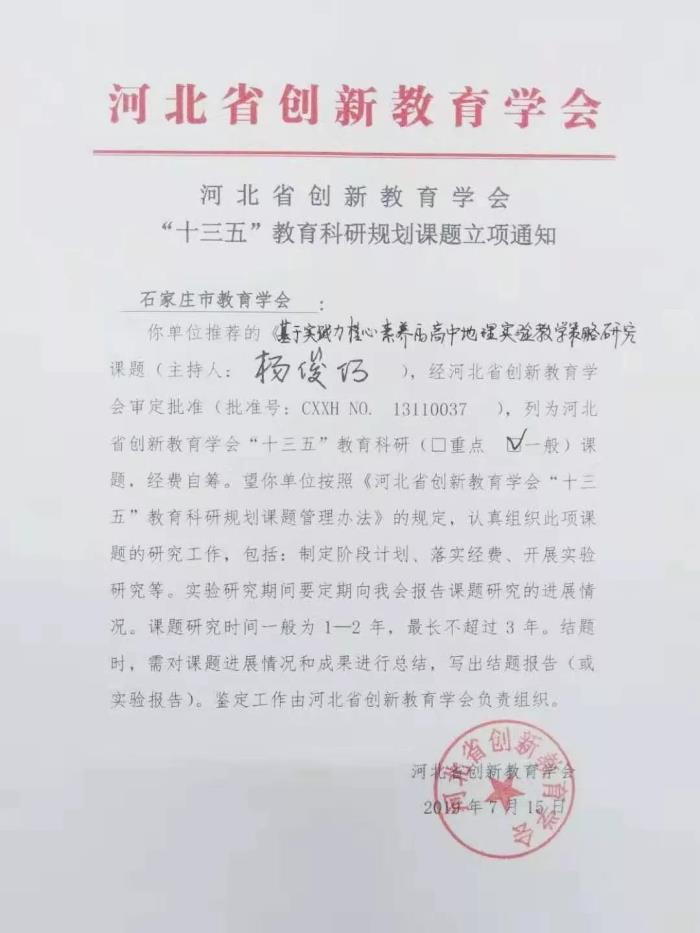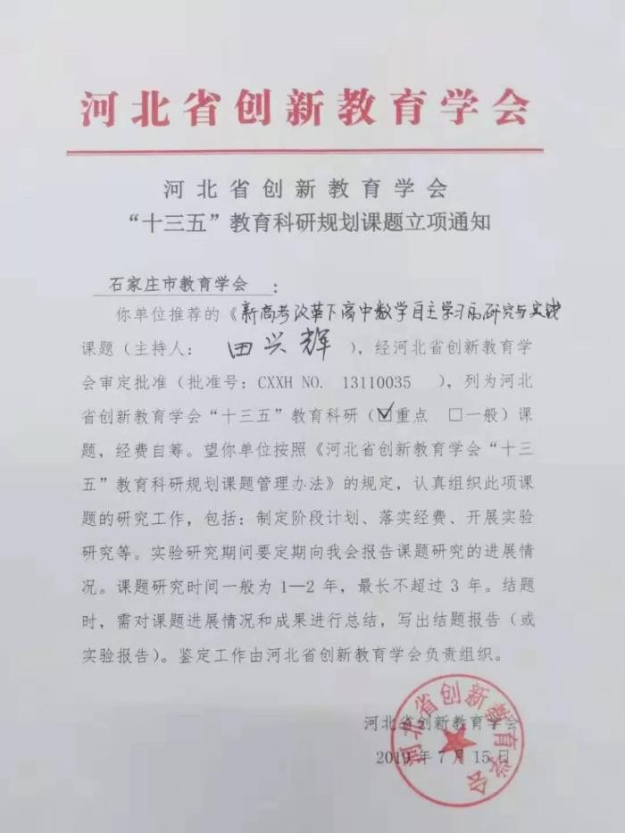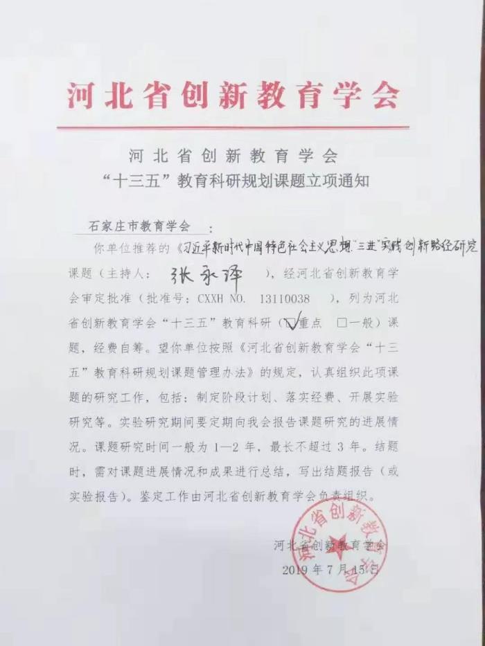 近日,石家庄二中西校区十一名教师获得河北省创新教育学会“十三五”教育科研规划立项。