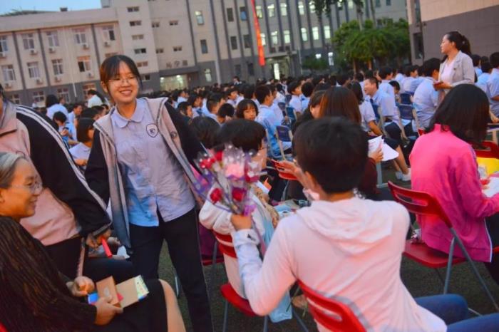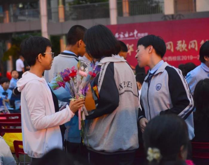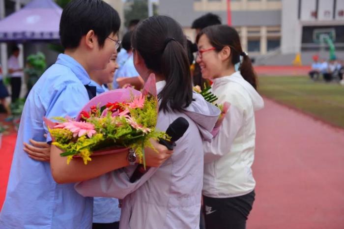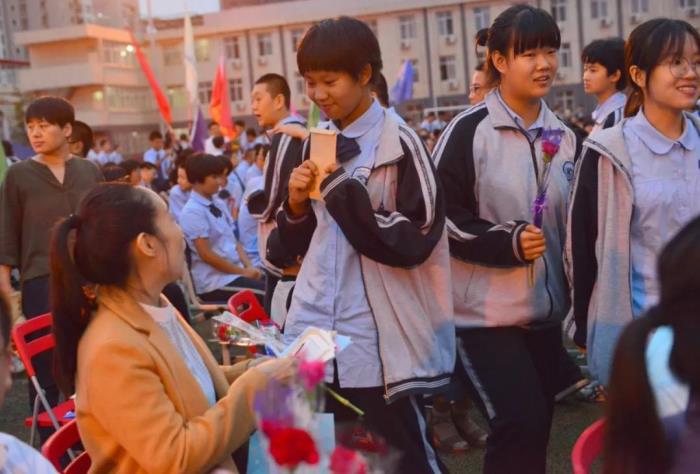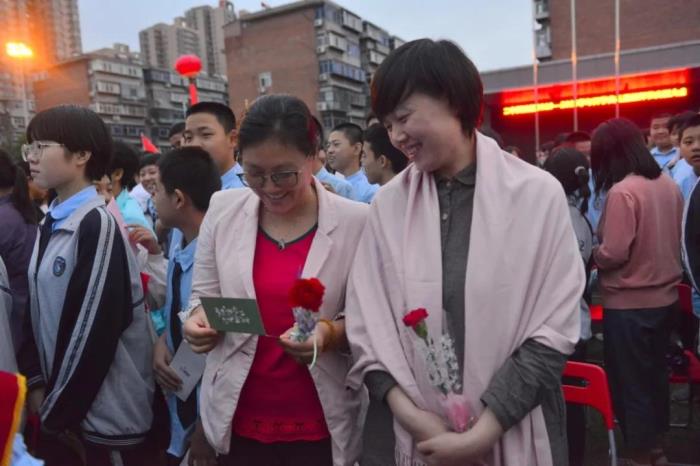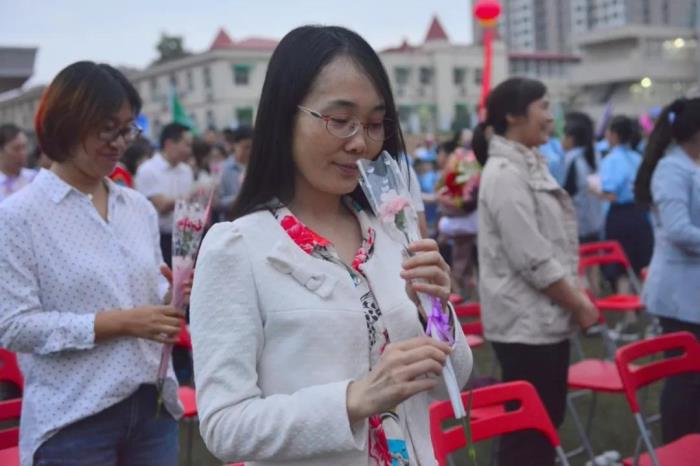 随后,各班学生代表走向我们全体老师和工勤人员,把鲜花送给他们,向他们送上真挚的祝福和感谢。现场洋溢着师生的幸福感,许多老师眼中充满了感动的泪水。
