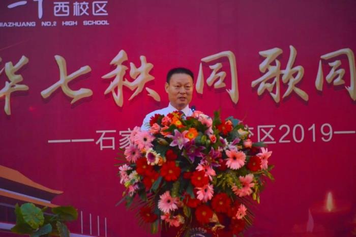最后,吴进校校长作重要讲话。 他对一直以来兢兢业业、无私奉献的老师们表示节日的祝贺。 吴校长说,师之大也,春风化雨,润物无声。我们应点亮教师的心灯,心中有温度,才能放光芒。二中西校区是教师发展的沃土,是学生成长的乐园。这所学校散发着迷人的芬芳,是因为她浸润了奋斗的荣光。吴校长鼓励老师要做四有老师,学生争当五好学生;师生一起,全力以赴,勇立新功,为新中国七十华诞献礼!