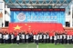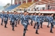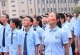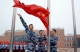 与西校区学生一起进行庄严的巨幅国旗交接仪式