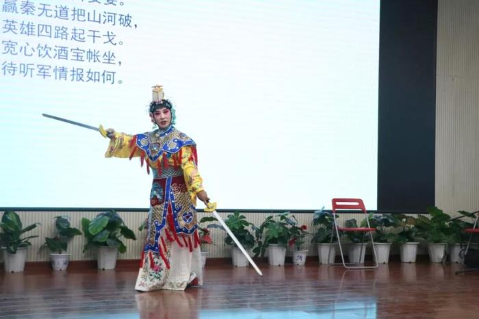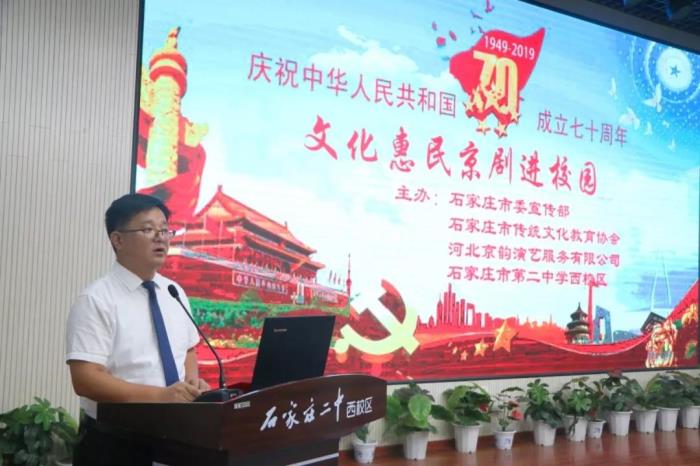 值此国庆节来临之际,由市委宣传部、市传统文化教育学会等组织的“文化惠民—京剧曲进校园”活动近日在二中西校区报告厅上演。石家庄市传统文化教育协会的演员们为师生们献上了一场精彩表演,让大家零距离感受戏曲魅力。市传统文化教育协会顾问杜平等和学校领导参加了活动。