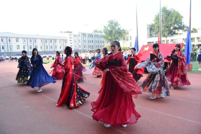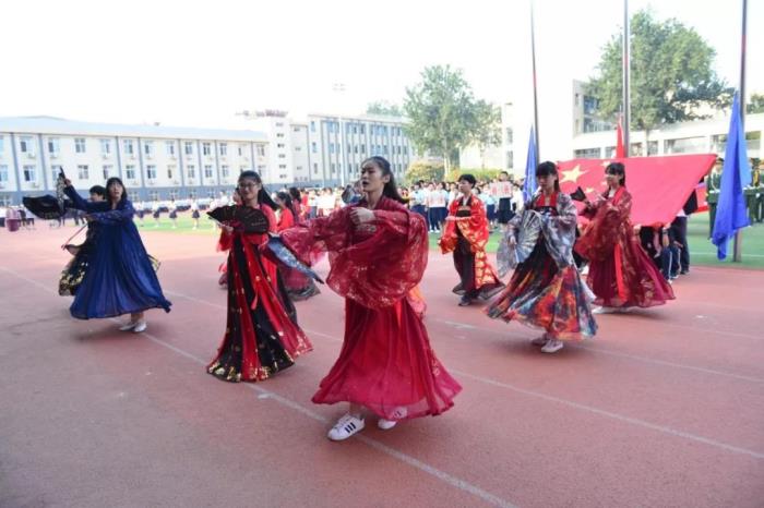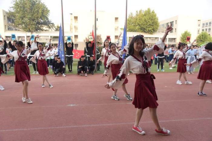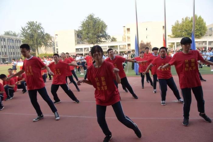 本届运动会恰逢祖国即将迎来70华诞,无论是在项目设置上还是在团体操表演上都精心设置了许多爱国的元素。国旗校旗方阵、花束方阵、旗林方阵、各班班级方阵依次走过主席台。他们朝气蓬勃、意气风发;他们的口号热情洋溢、铿锵有力,充满自信。随风飘扬的红旗也正象征着我校学子的激情与朝气,代表着拼搏进取、勇往直前的弘毅精神。