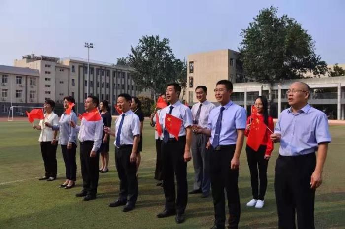 10月1日上午9:20,在举国欢庆之际,我校在操场举行了升国旗仪式,全体中层及以上干部参加升旗仪式。随后,大家在会议室集中收看庆祝中华人民共和国成立70周年大会实况。庆祝大会热烈隆重,让大家心潮澎湃,激动不已。爱国的热情在每个人的心中激荡。