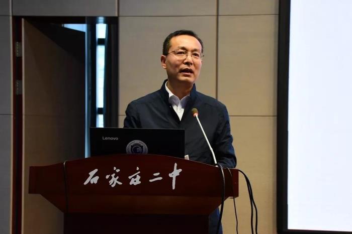 石家庄二中党委委员宋泽亮讲话,他阐述了此次大会的指导思想、主要任务以及教研内容。