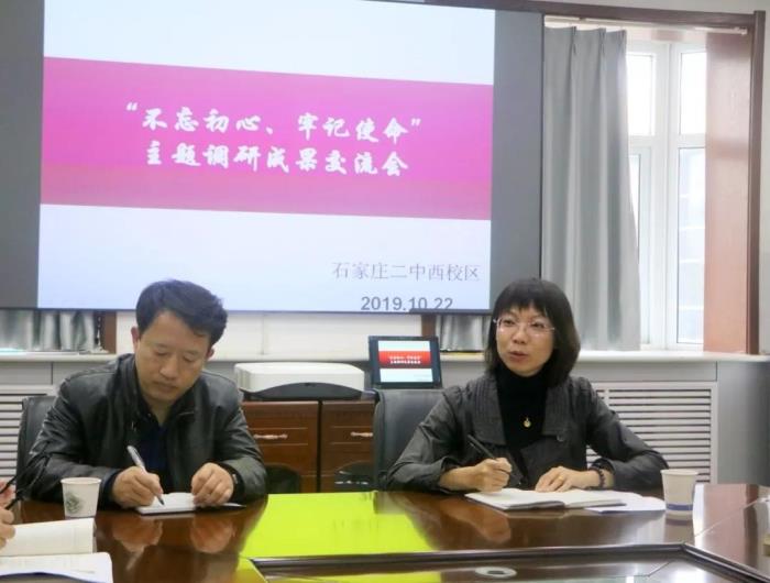 按照“守初心、担使命,找差距、抓落实”的总要求,吴进校校长、陈怀彦书记首先汇报了二中西校区开展“不忘初心、牢记使命”主题教育的相关情况,之后班子成员分别介绍了开展主题教育以来的调研成果,也提出了发现的部分问题,并提出了解决问题、改进工作的思路措施。