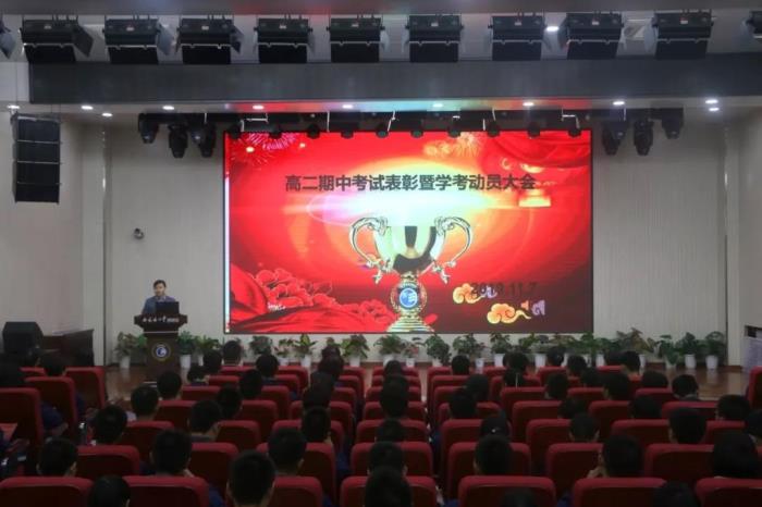 冬日虽至,高二年级的同学内心却涌动着朝阳般的热情和希望。近日的期中考试中涌现出了一批优秀学子,他们播撒下了辛勤的汗水,获得了骄人的成绩,也赢得了广大师生的认可和赞誉。为了表彰先进,激发同学们为梦想拼搏的热情,11月7日,我校高二年级举行期中考试表彰大会。活动由高二年级郭鹏飞主任主持。教务处常乐主任、教育处刘建炜主任以及高二年级师生参加了活动。