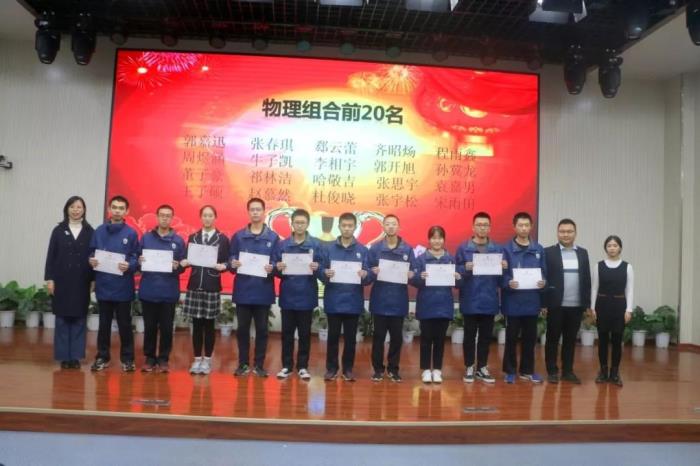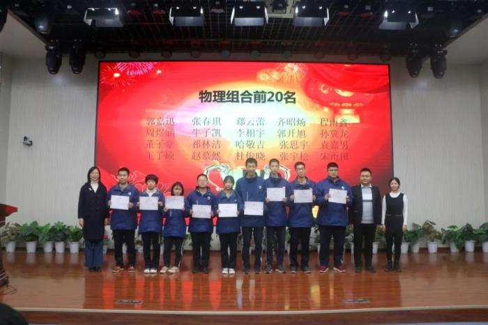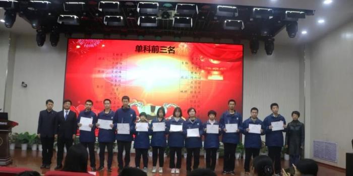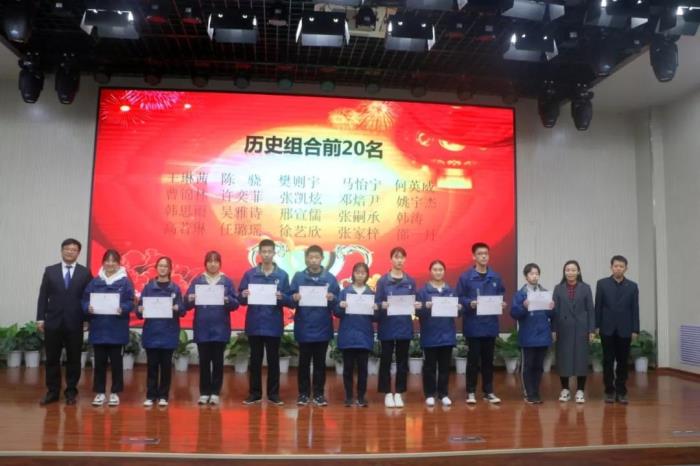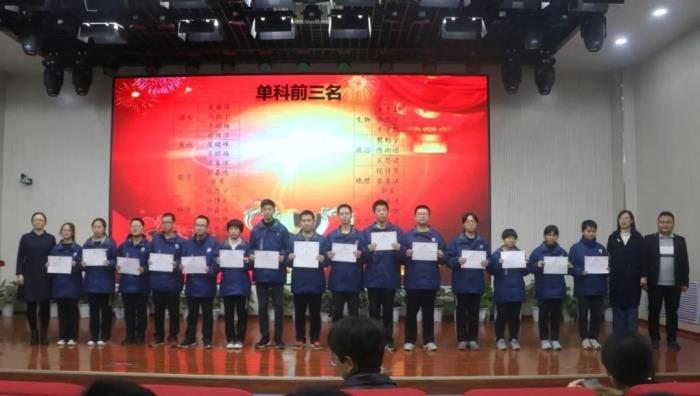 在热烈的掌声中,郭鹏飞主任、郑建伟副主任、陈慧琴老师宣布了在期中考试中表现优秀的同学名单。其中包括物理和历史组合年级前20名、 各科单科前三名、年纪进步之星等。学校领导和老师上台为他们颁奖并合影留念。一张张崭新的奖状既是对他们努力付出的充分肯定,也是对他们圆梦未来的鼓励期盼。