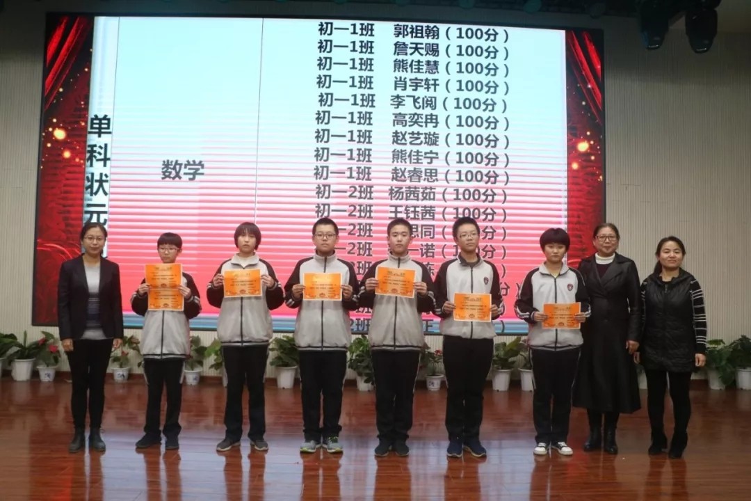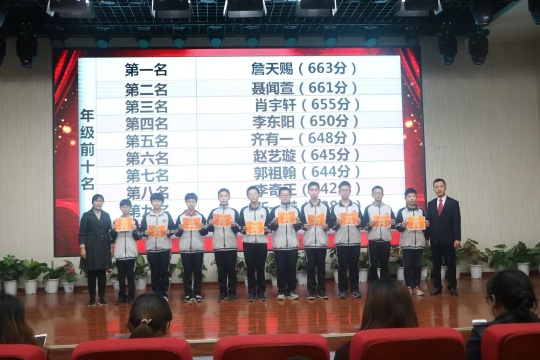 大会伊始,初一年级吴世杰主任宣读了获奖名单,报告厅内的掌声此起彼伏,同学们都自发用掌声和欢呼声为本班获奖同学致以最诚挚的祝贺。教育处李玉敏副主任、各班班主任、各科老师分别为获奖学生颁发奖状。本次大会共表彰了年级前十名、班级前十名、单科状元、进步之星等优秀同学。